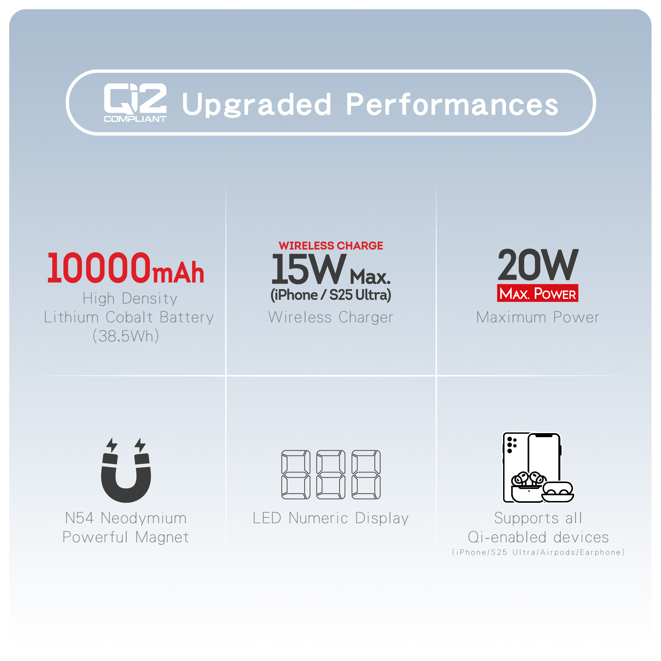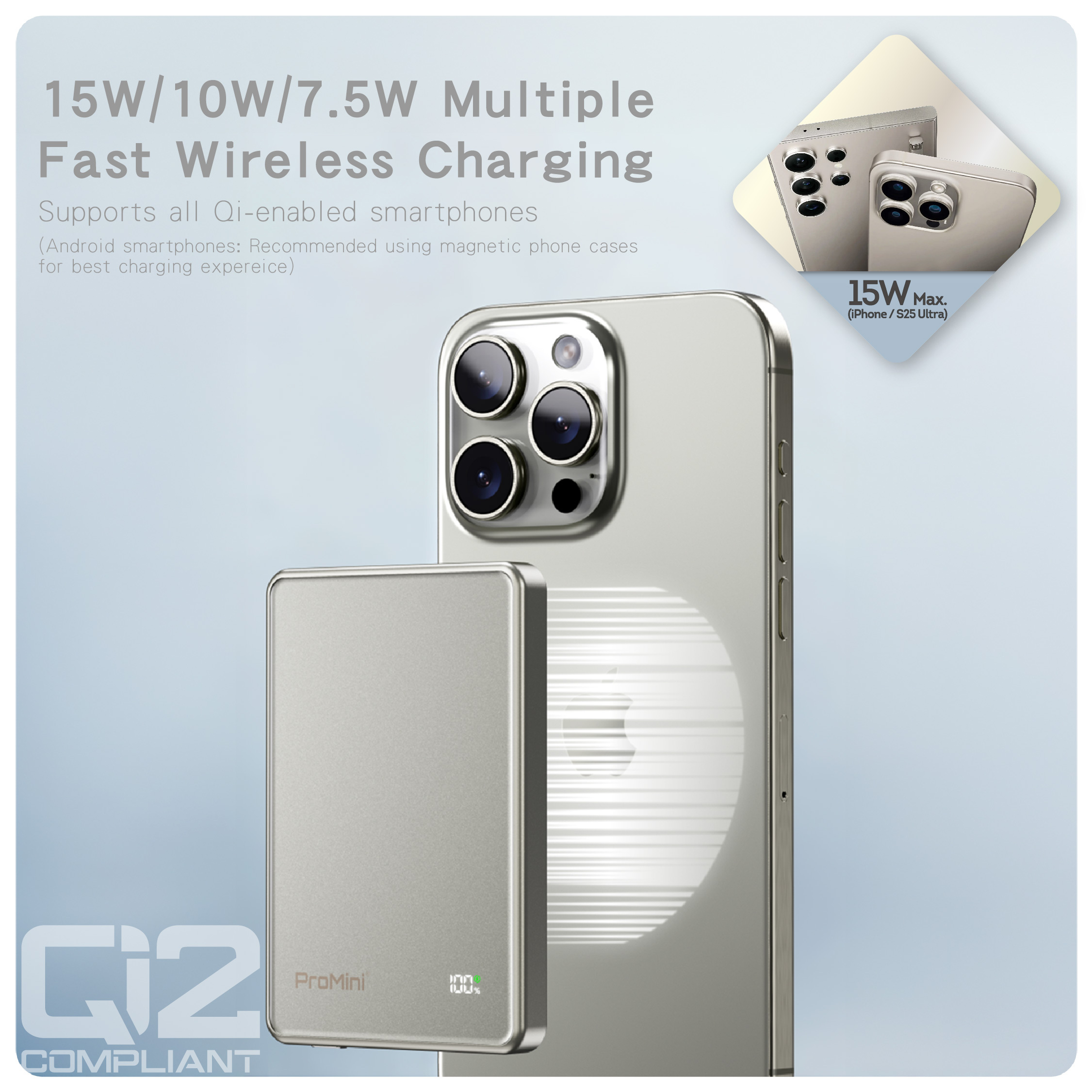 Compliant with Qi2 standard, supports 15W max. wireless charge (iPhone & Galaxy S25 Ultra)