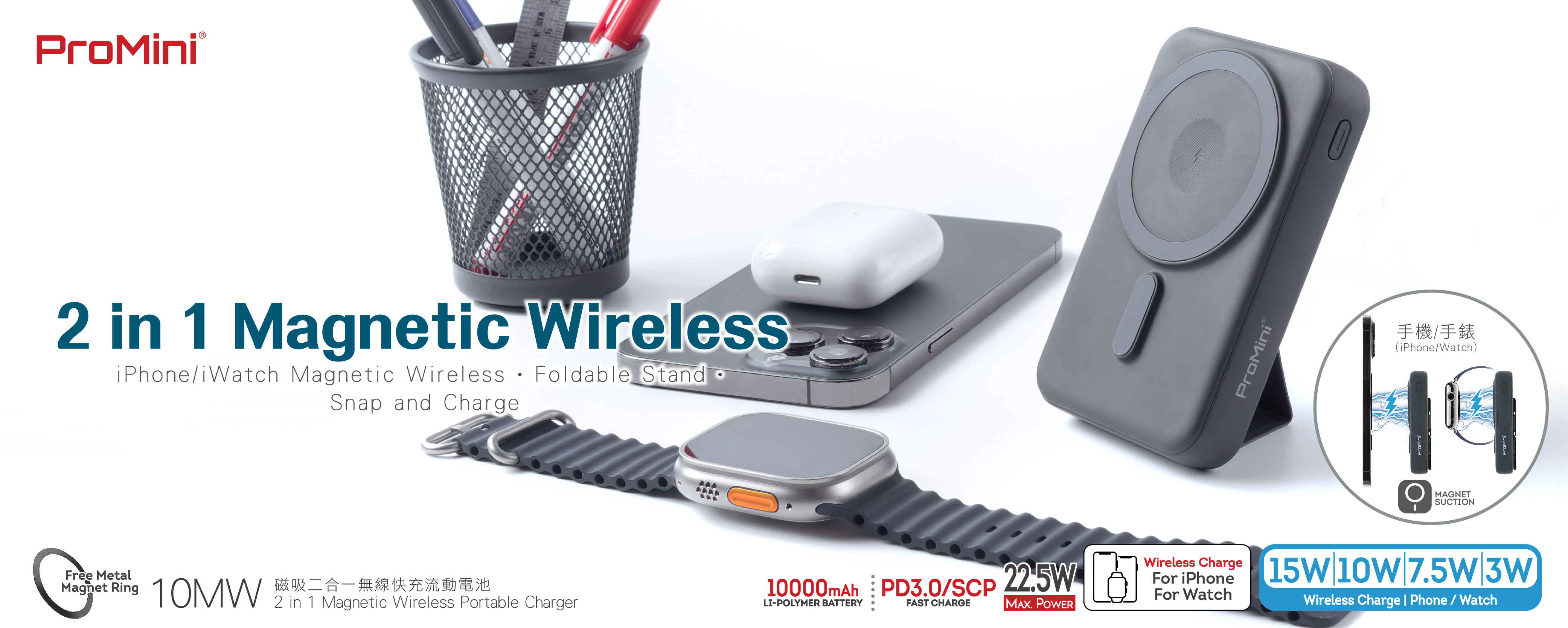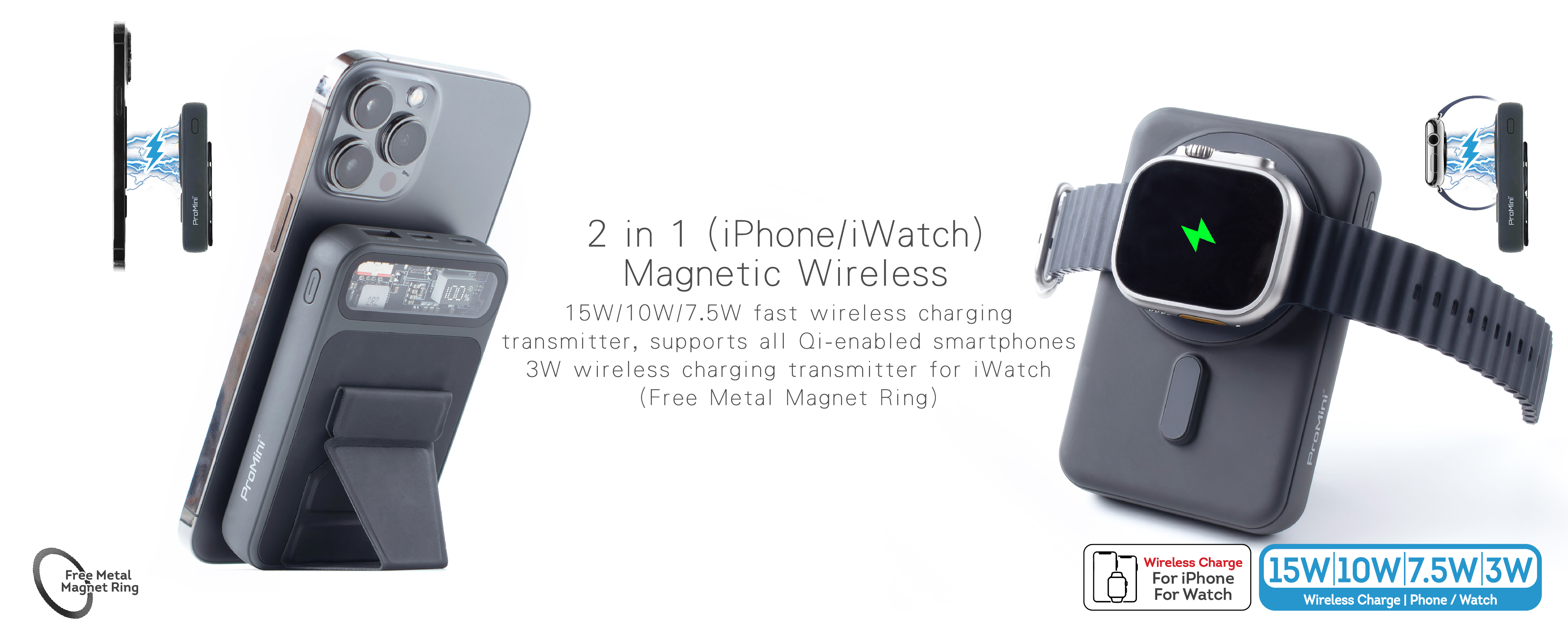- 2 in 1 (iPhone/iWatch) Magnetic Wireless Portable Charger.