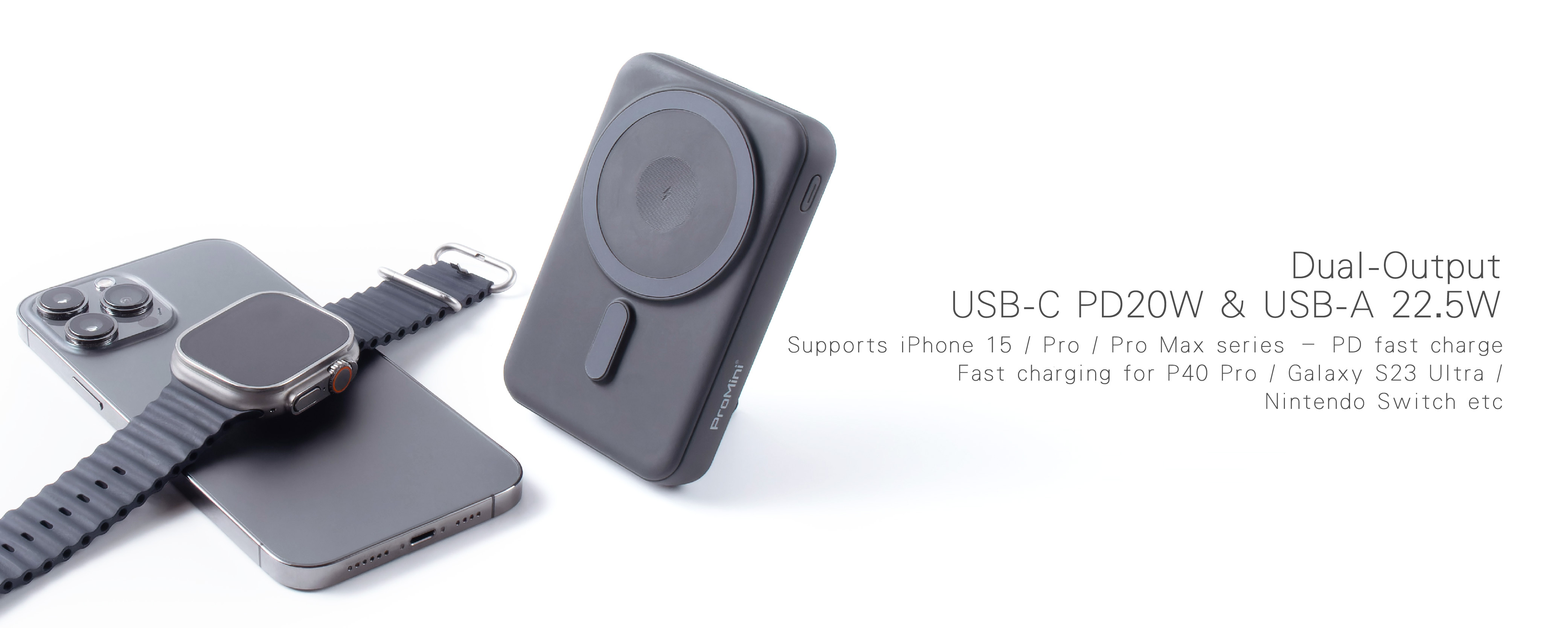- Dual-output, USB-C PD 20W x 1, USB-A 22.5W x 1.