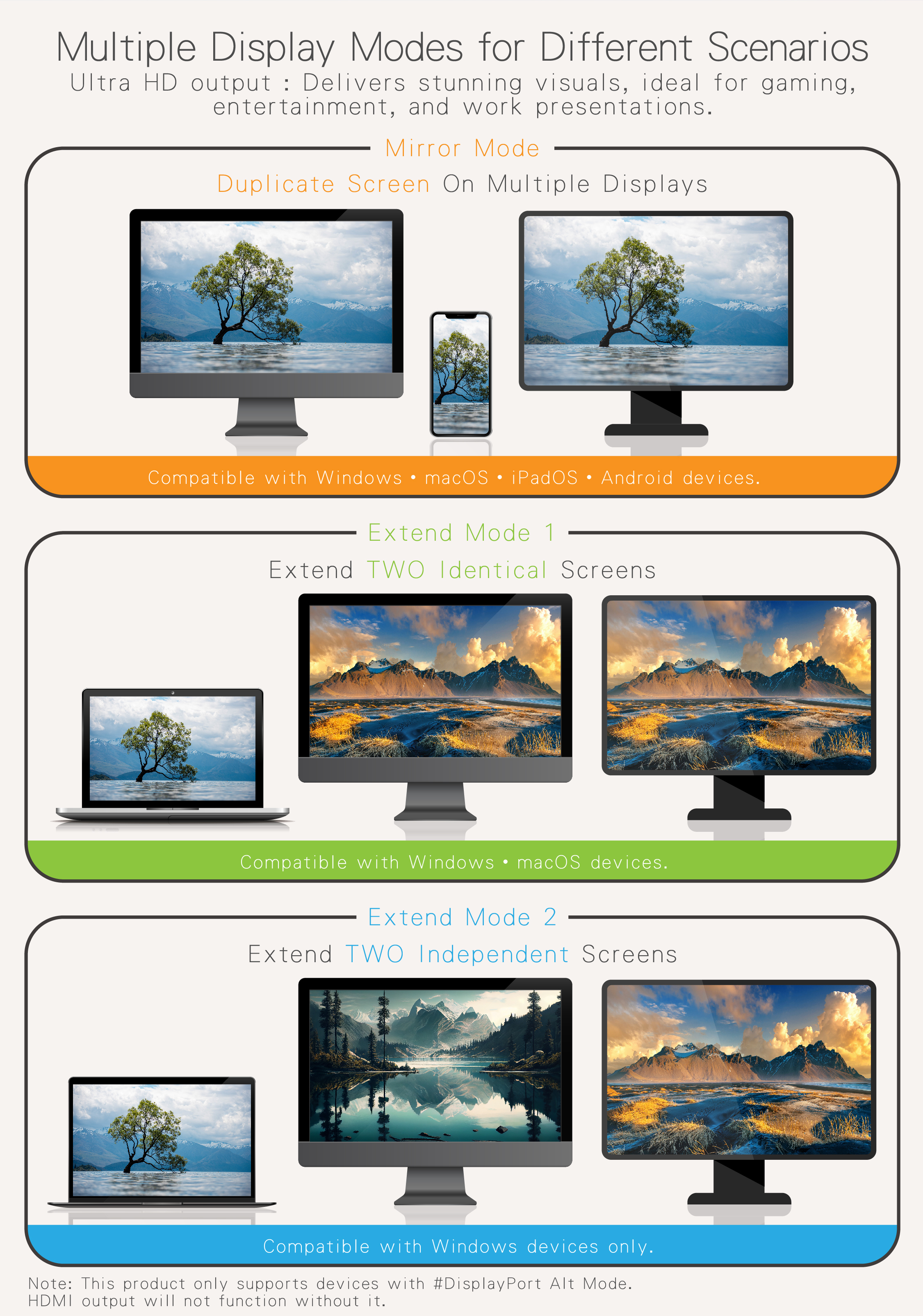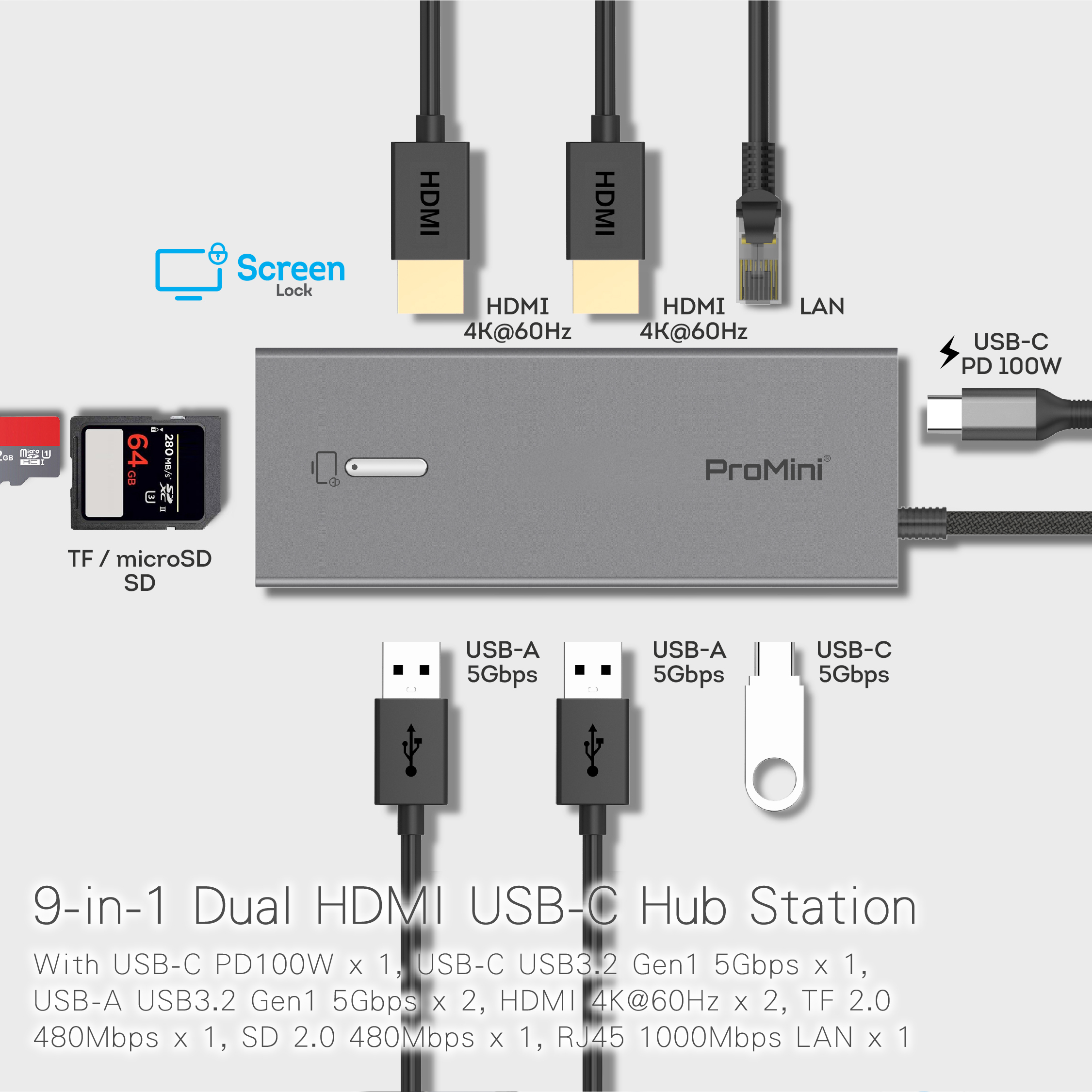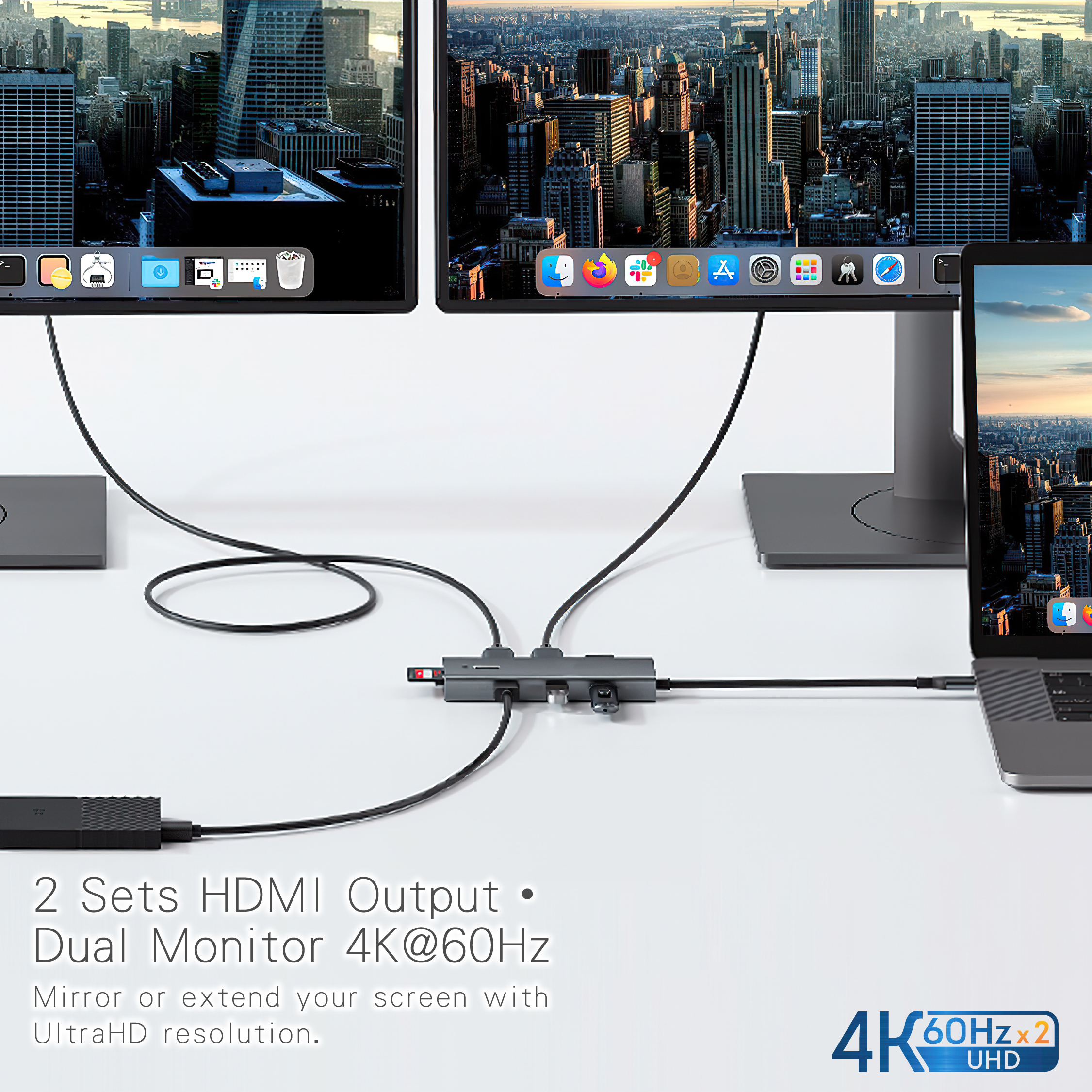 - 2 sets HDMI output, Dual monitor 4K@60Hz