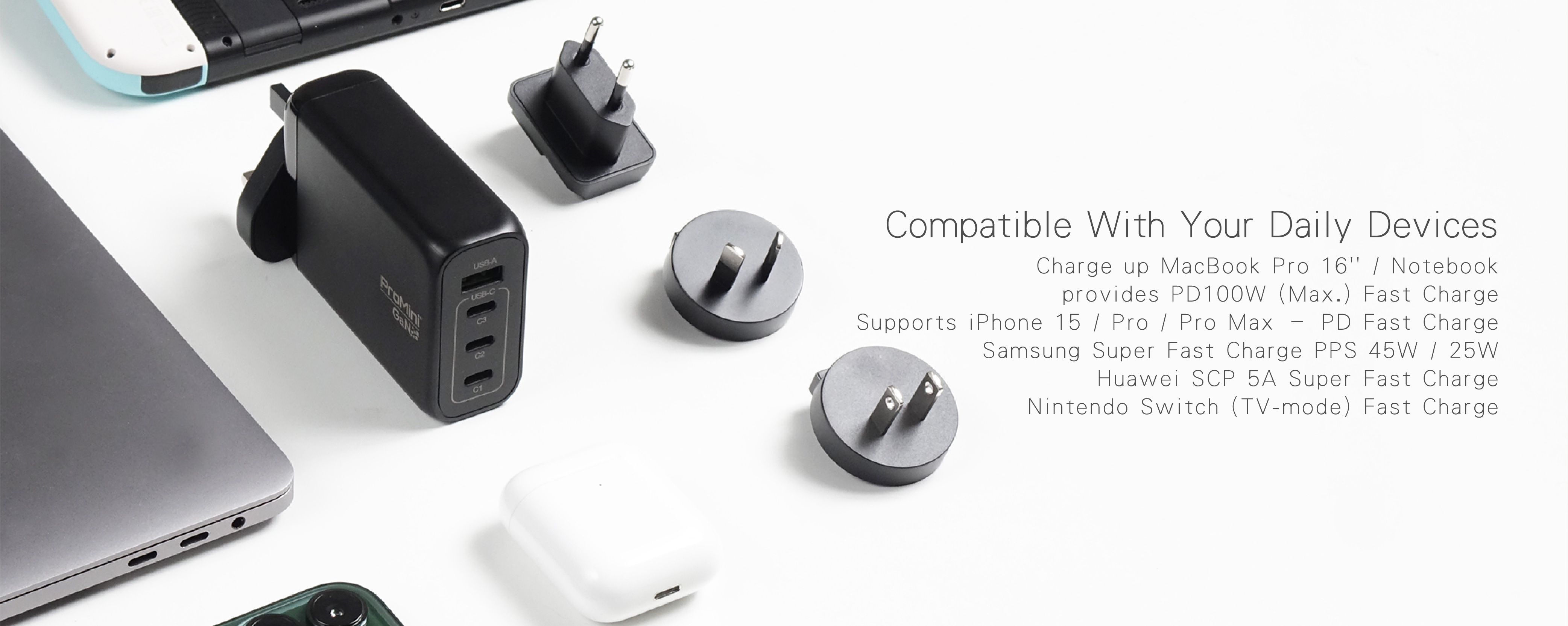 - Charge up MacBook Pro 16” / Notebook, provides PD100W (Max.) fast charge.