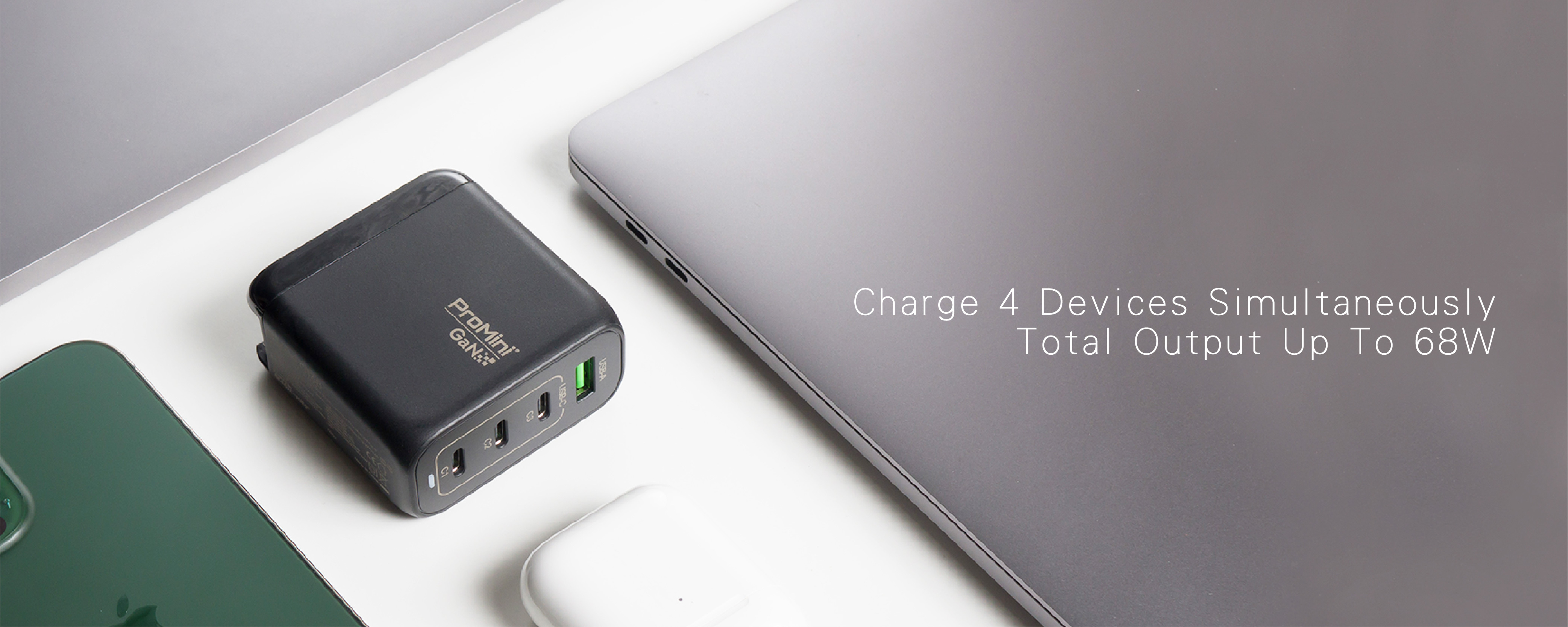 - With the advanced GaN technology, it is designed to be the alternatives to traditional chargers, by performing powerful output for multiple devices in a much compact and convenient size.