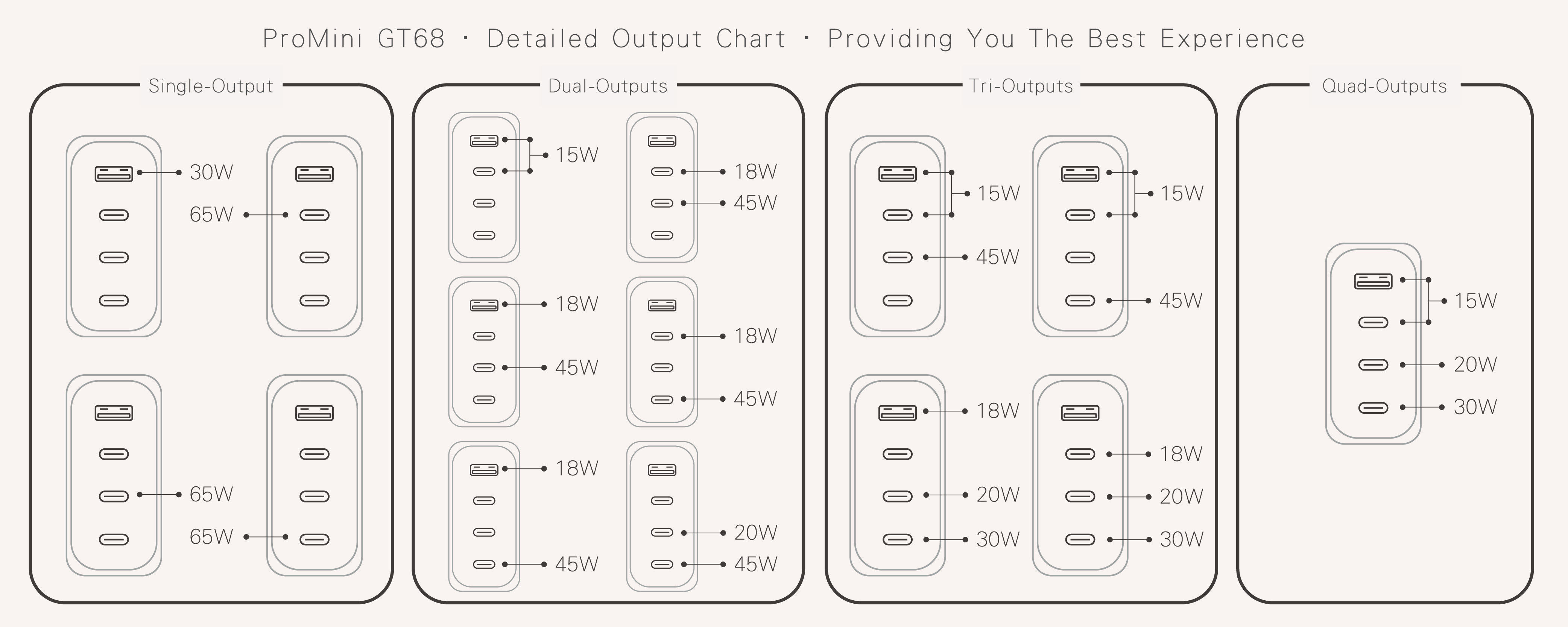 - Total output up to 68W