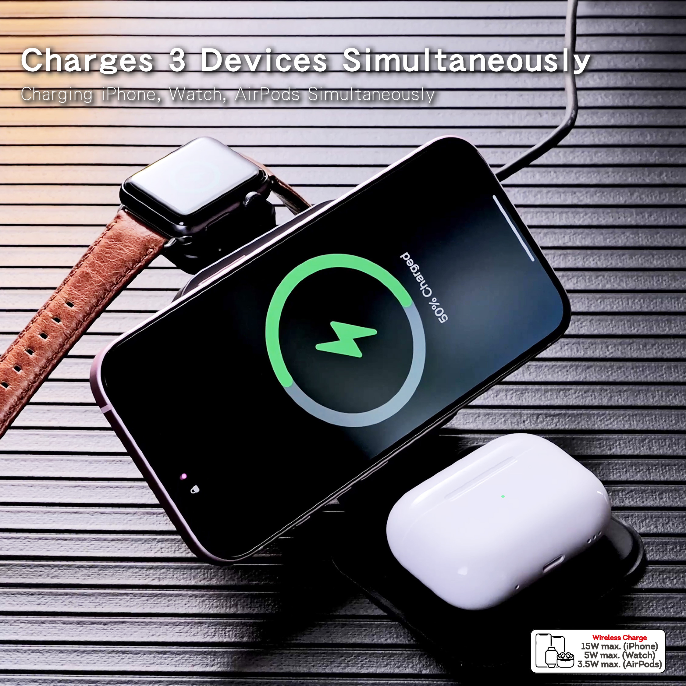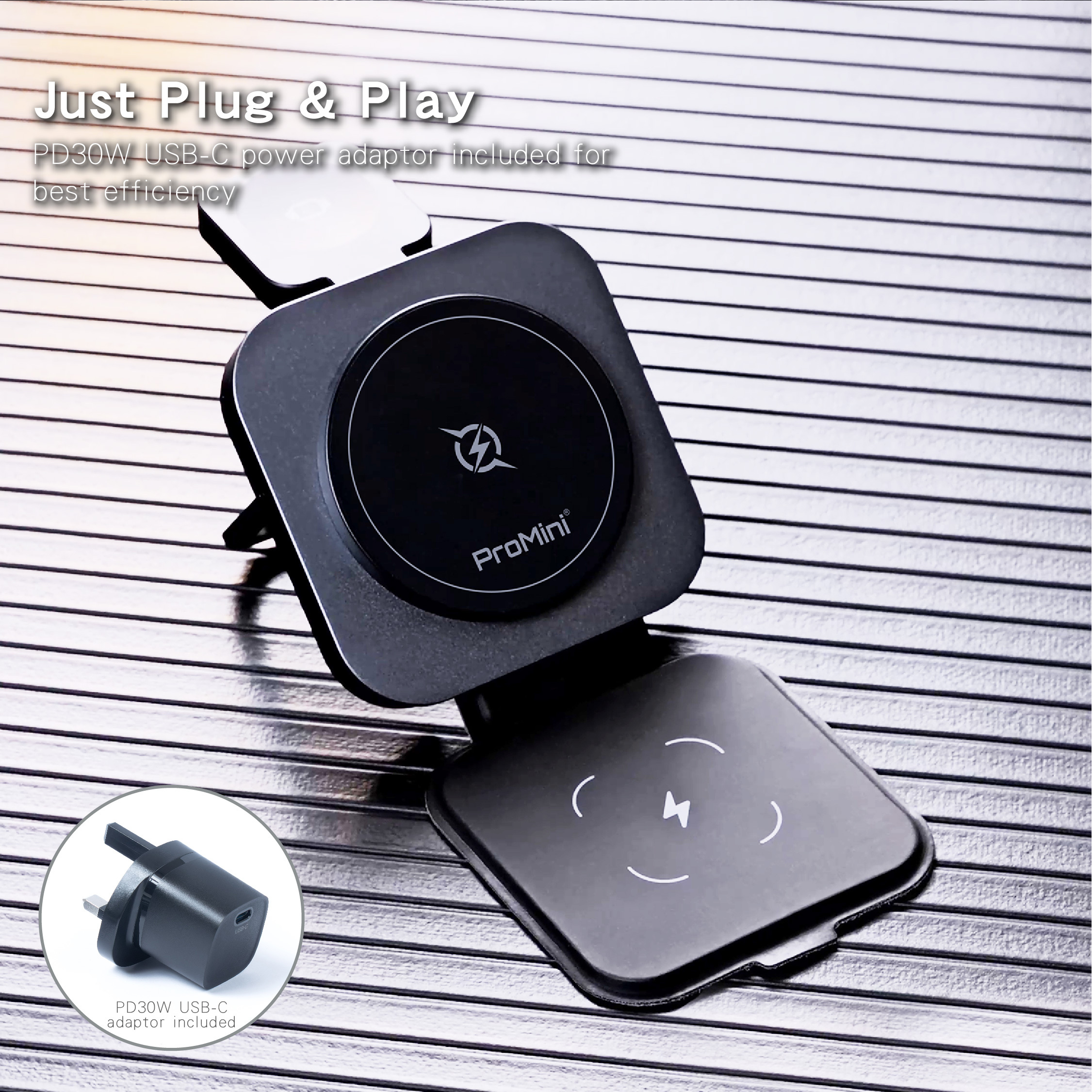 - Charging iPhone, Watch, AirPods simultaneously (Plug and Play, PD30W USB-C power adaptor included)