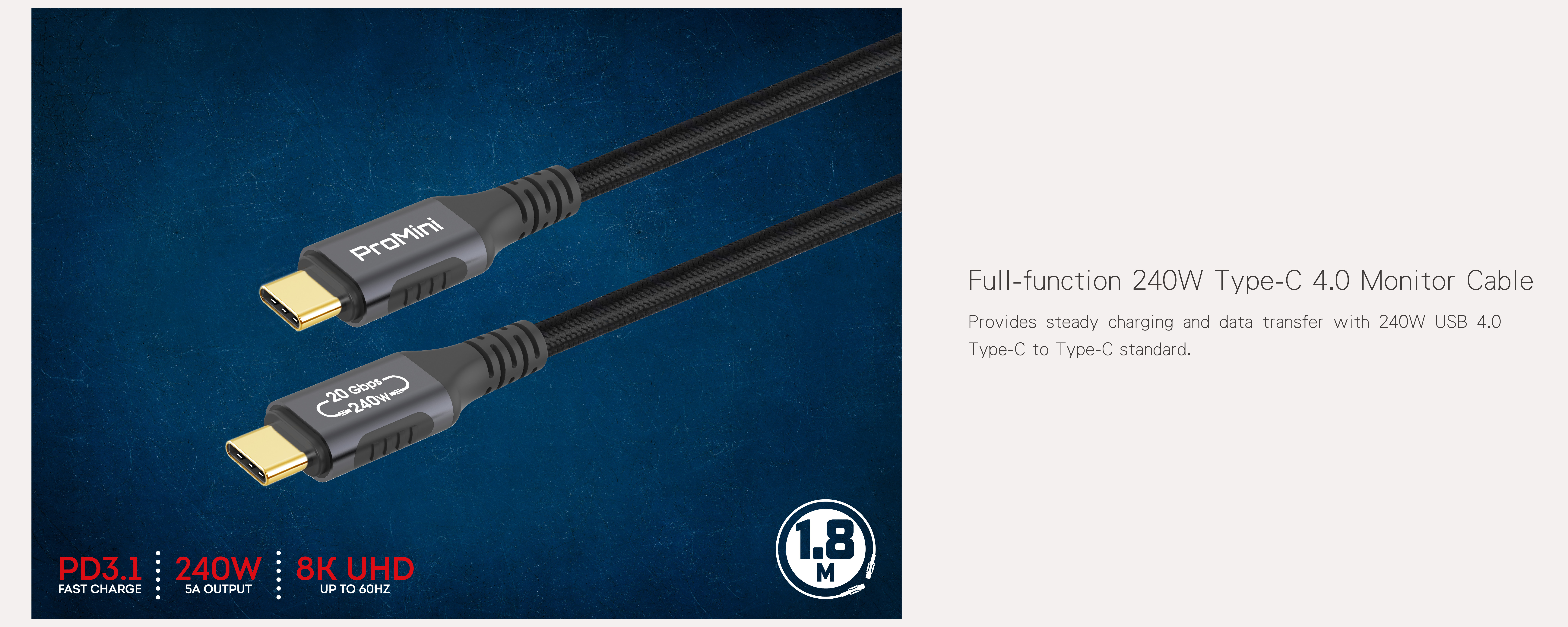 ProMini Type-C to Type-C 240W 4.0 Monitor Cable