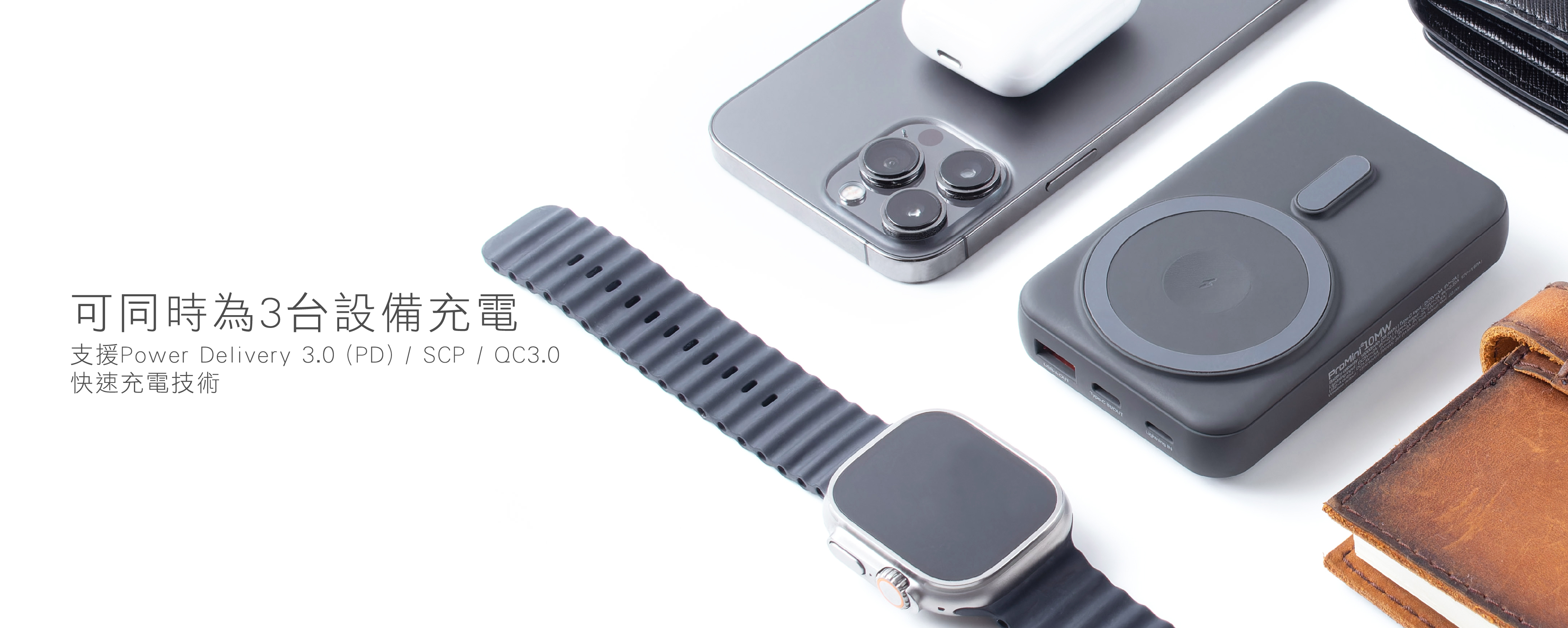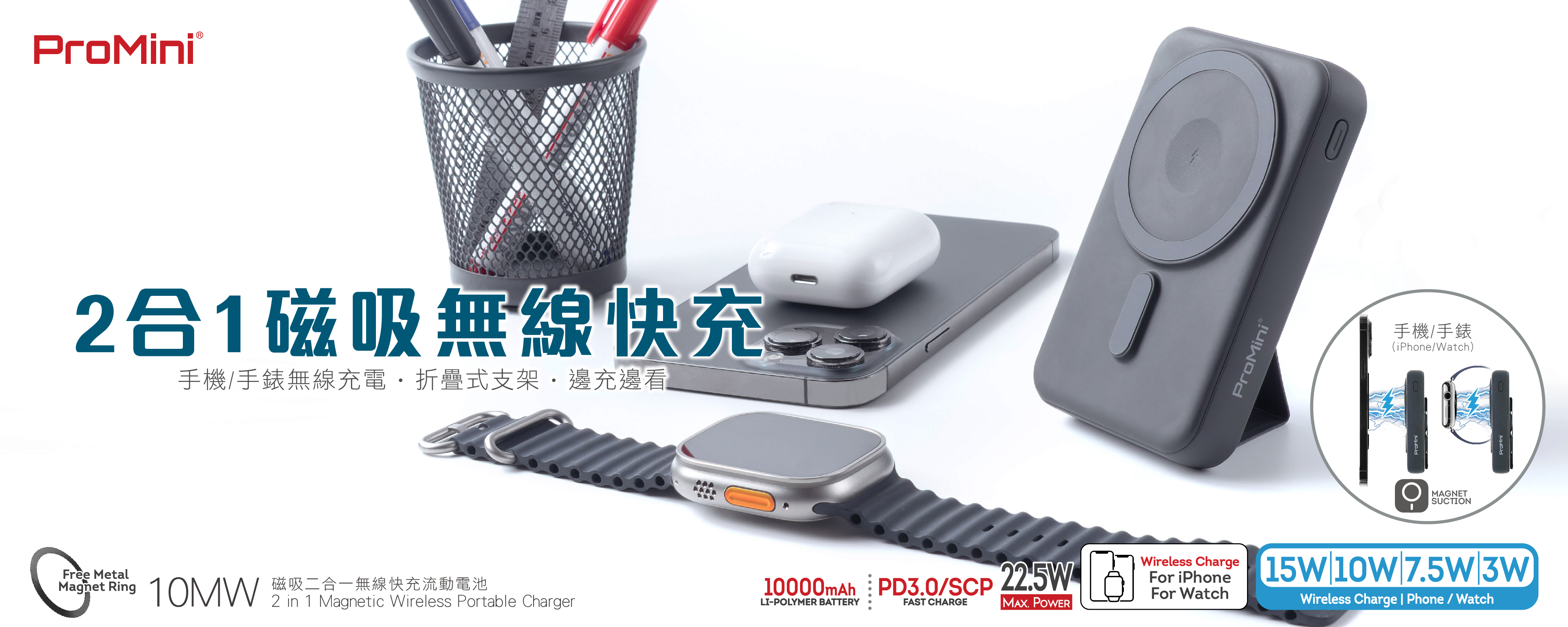 -支援大部分兼容Qi無線充電的Android手機(建議使用磁吸殼以體驗產品最佳無線充電效能)