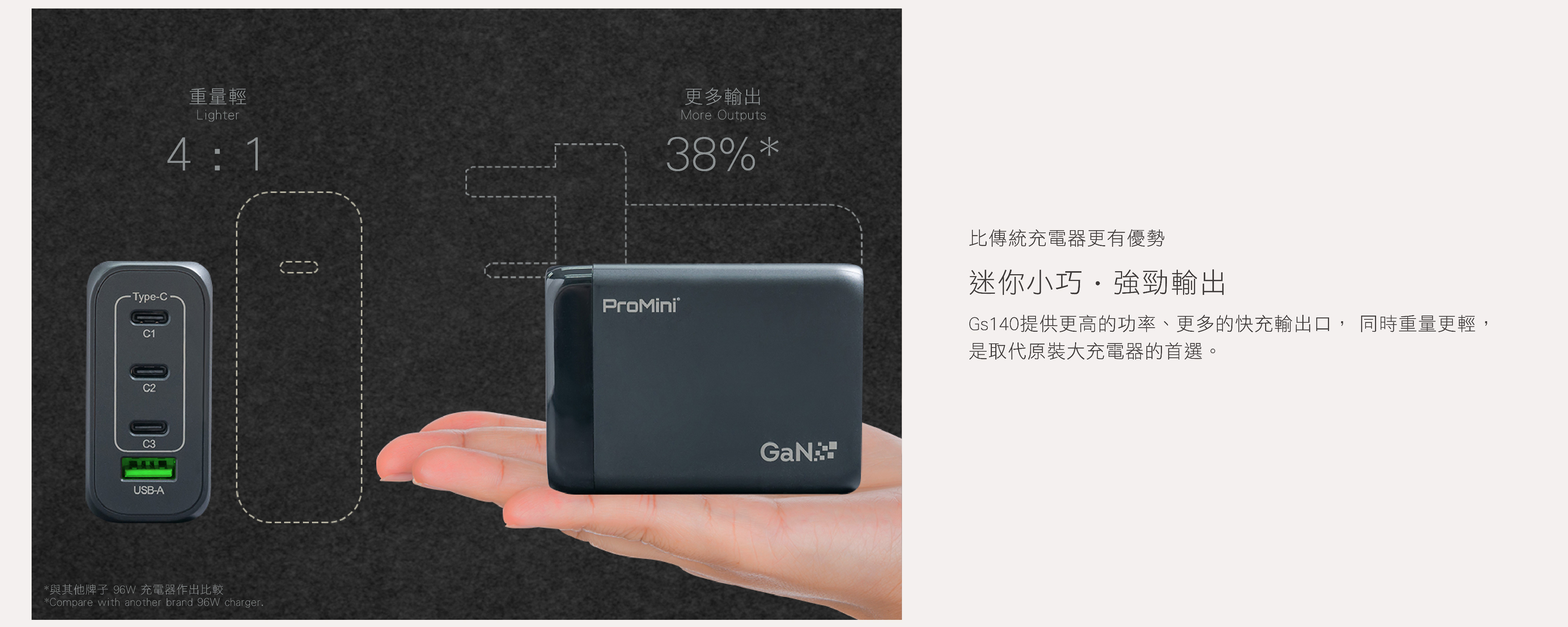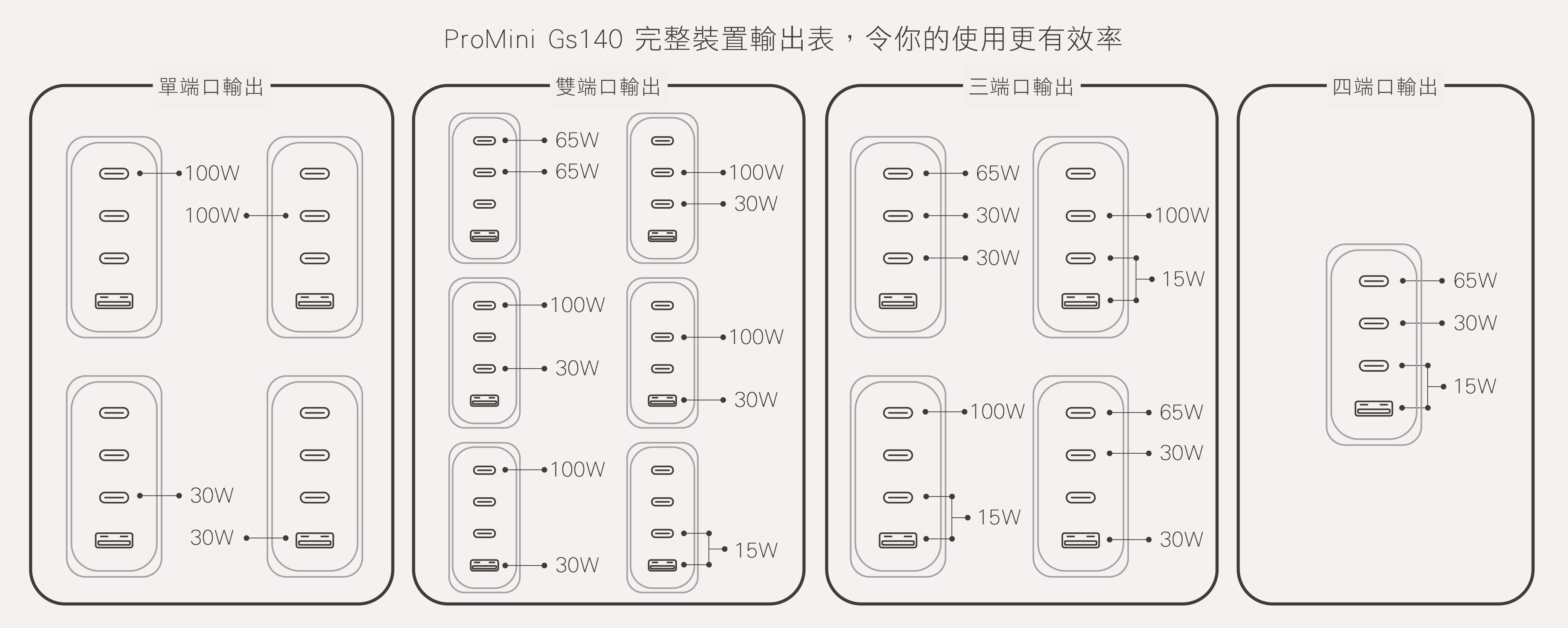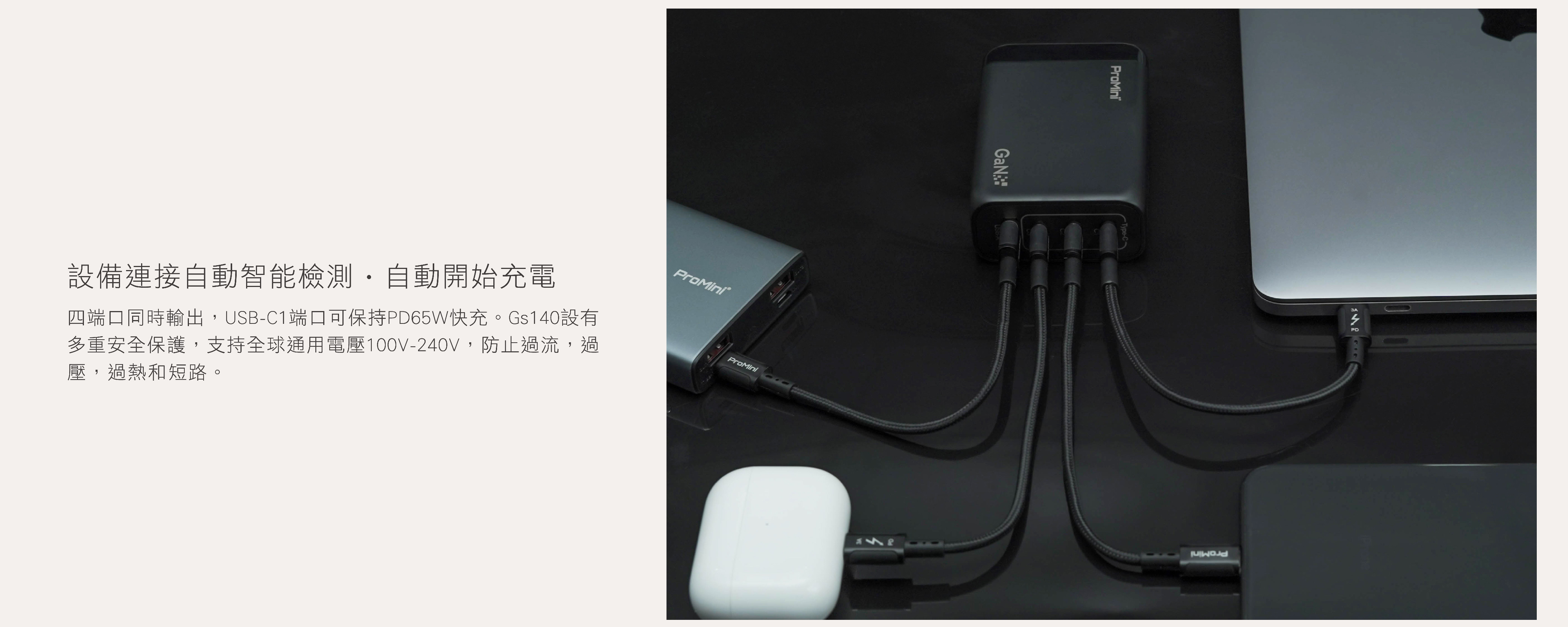 * 採用負載儀器測試,USB-C1和C2端口同時輸出70W,共輸出140W,1小時正常運作。