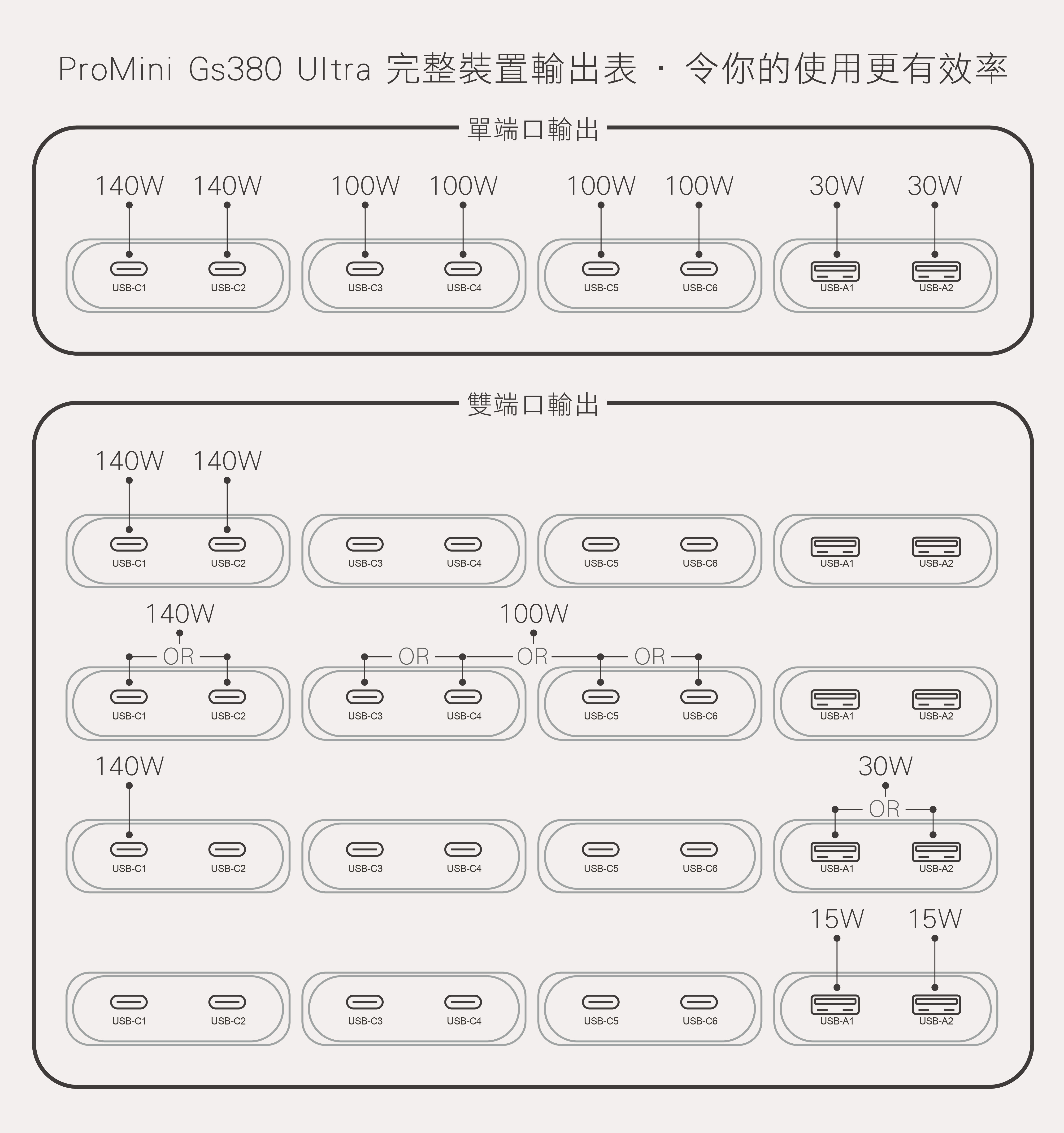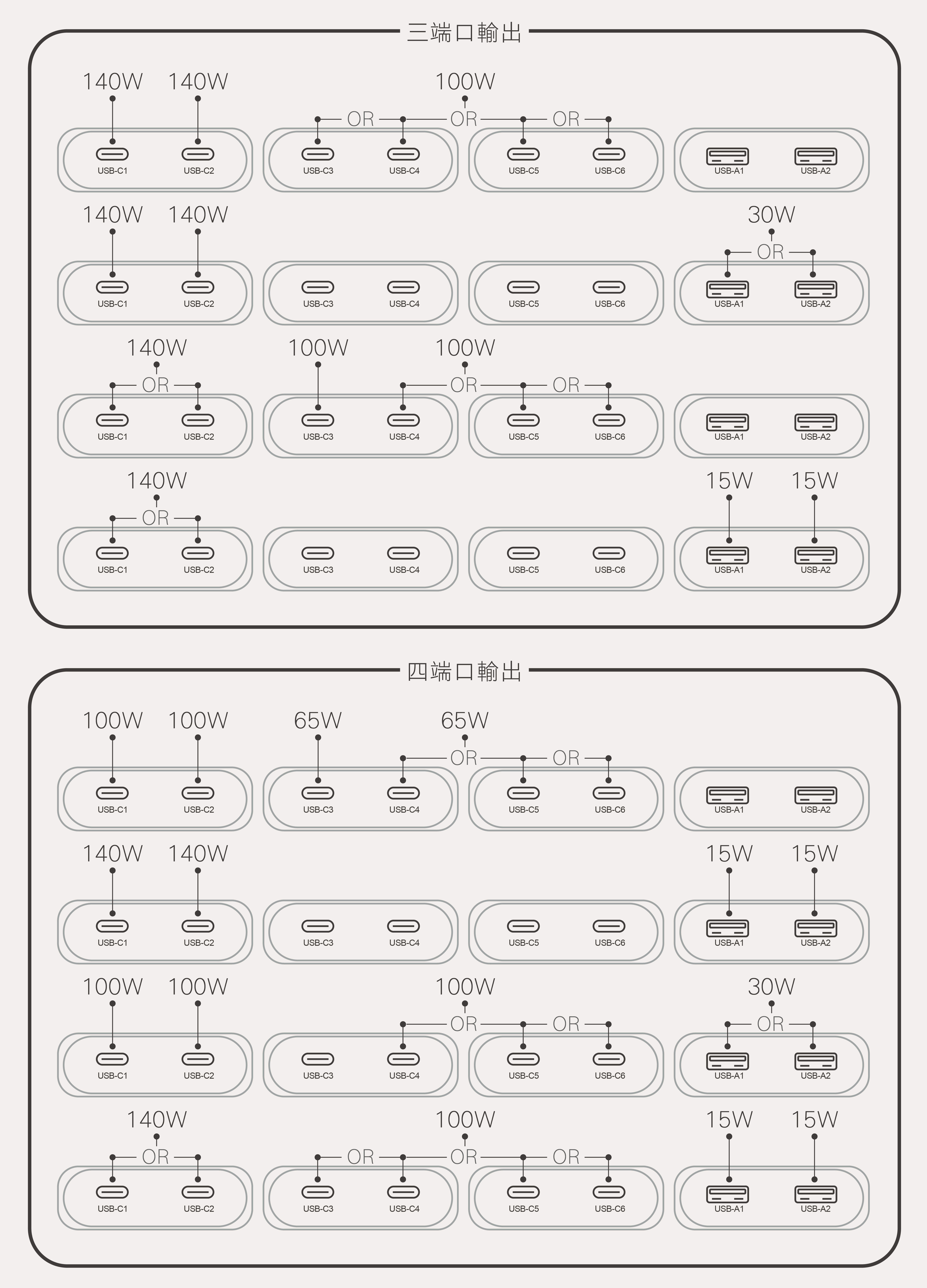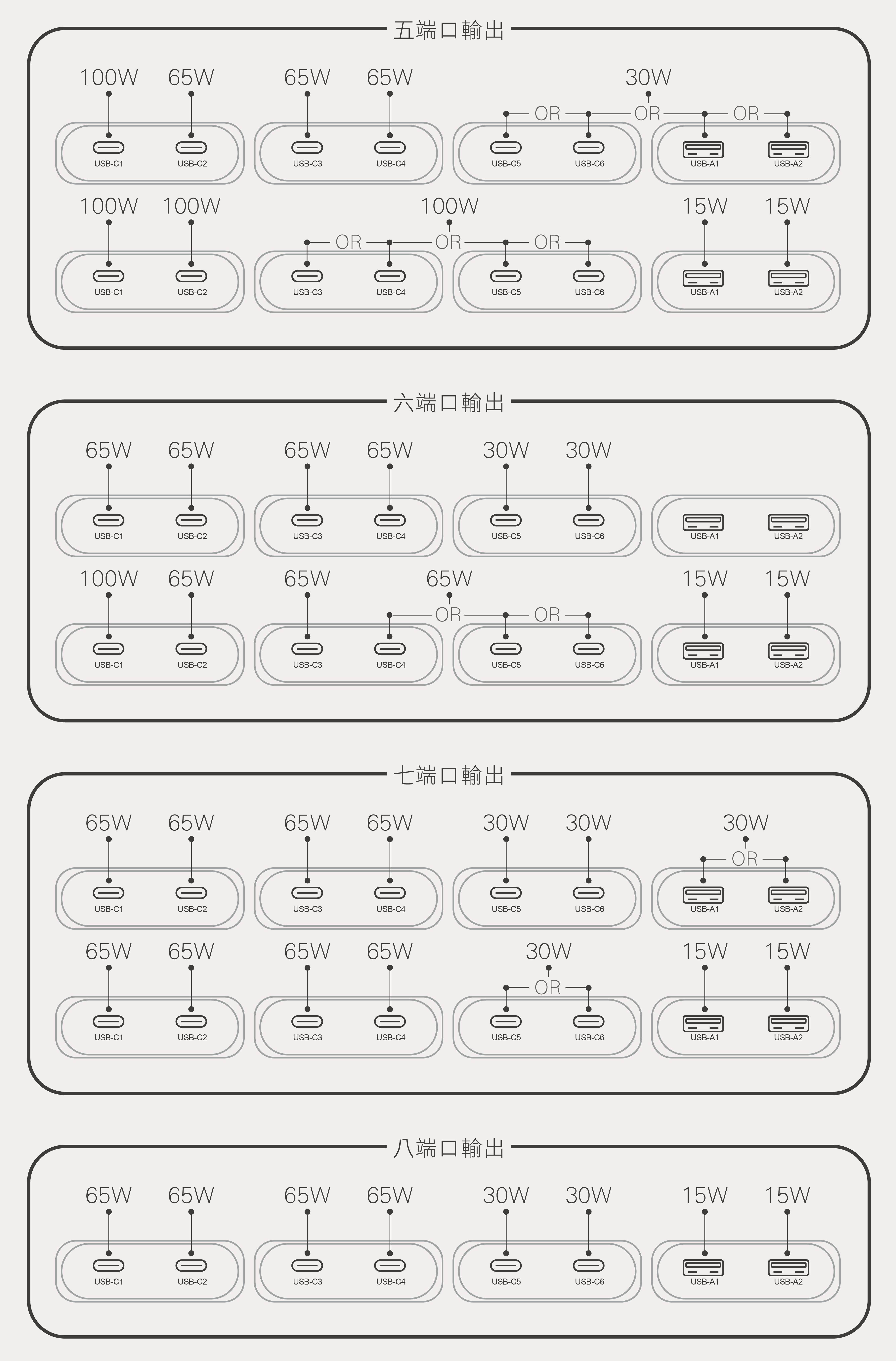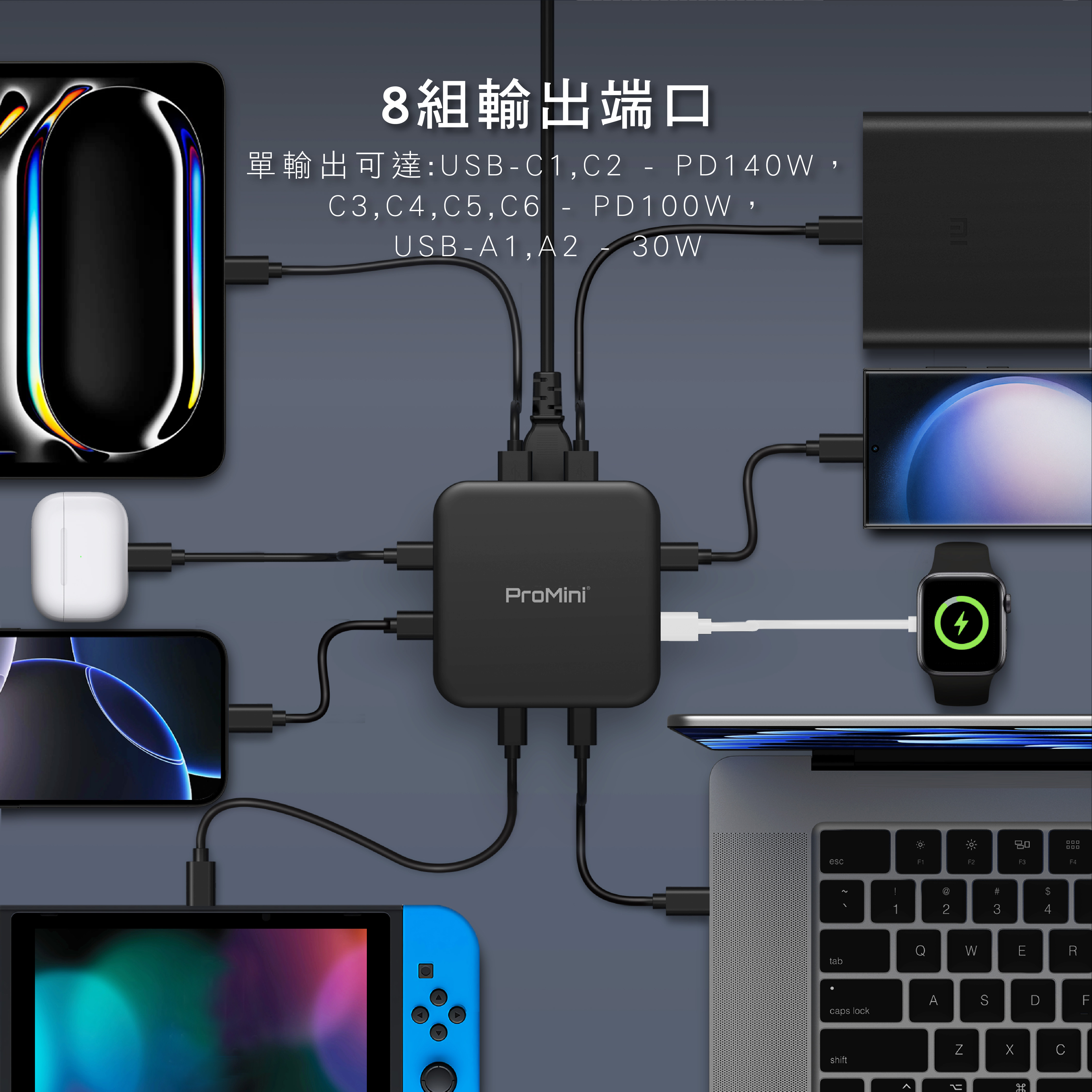 -6端口同時輸出,USB-C1端口最佳可保持PD100W 輸出