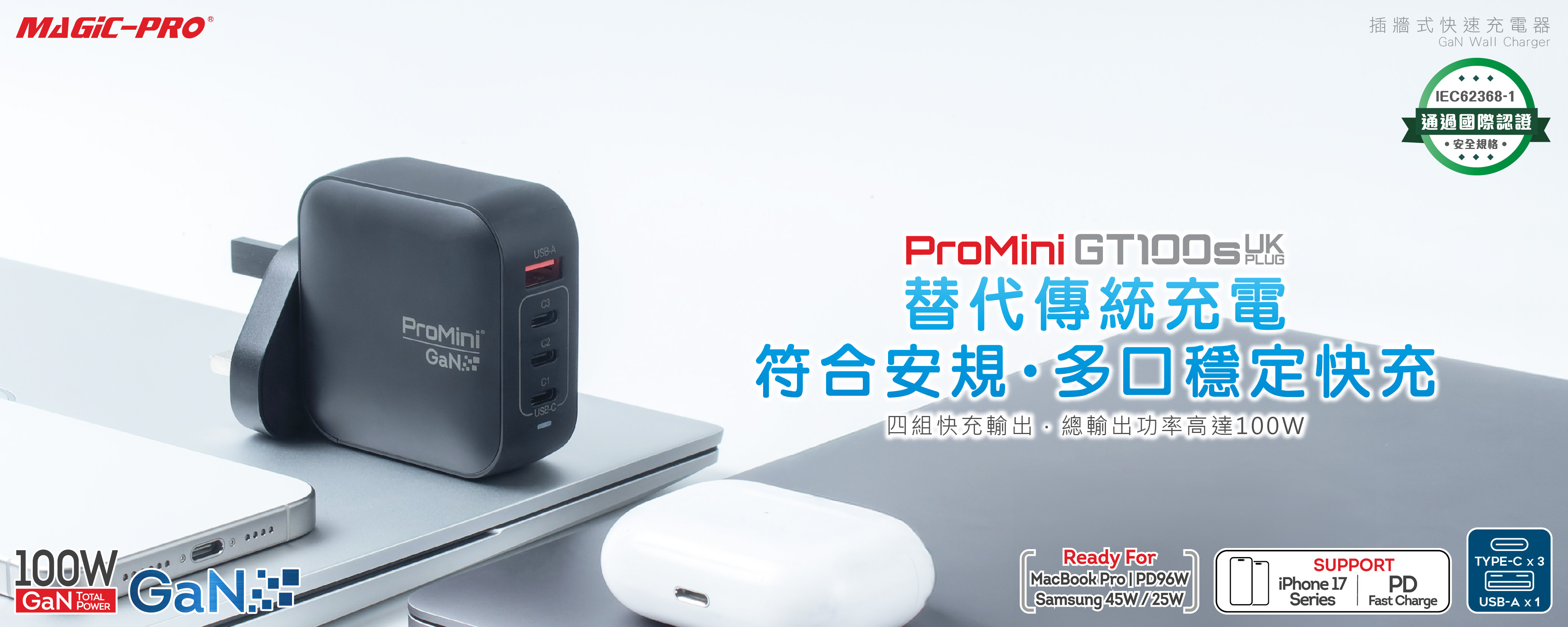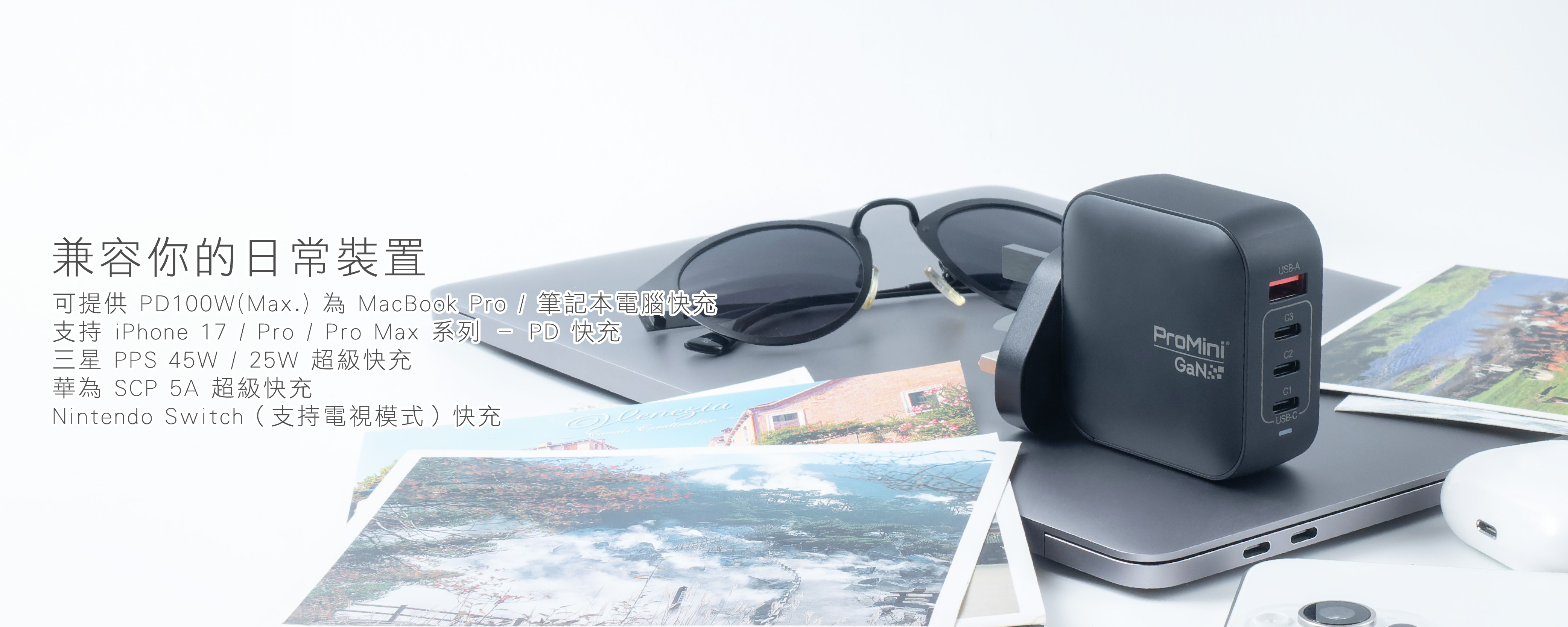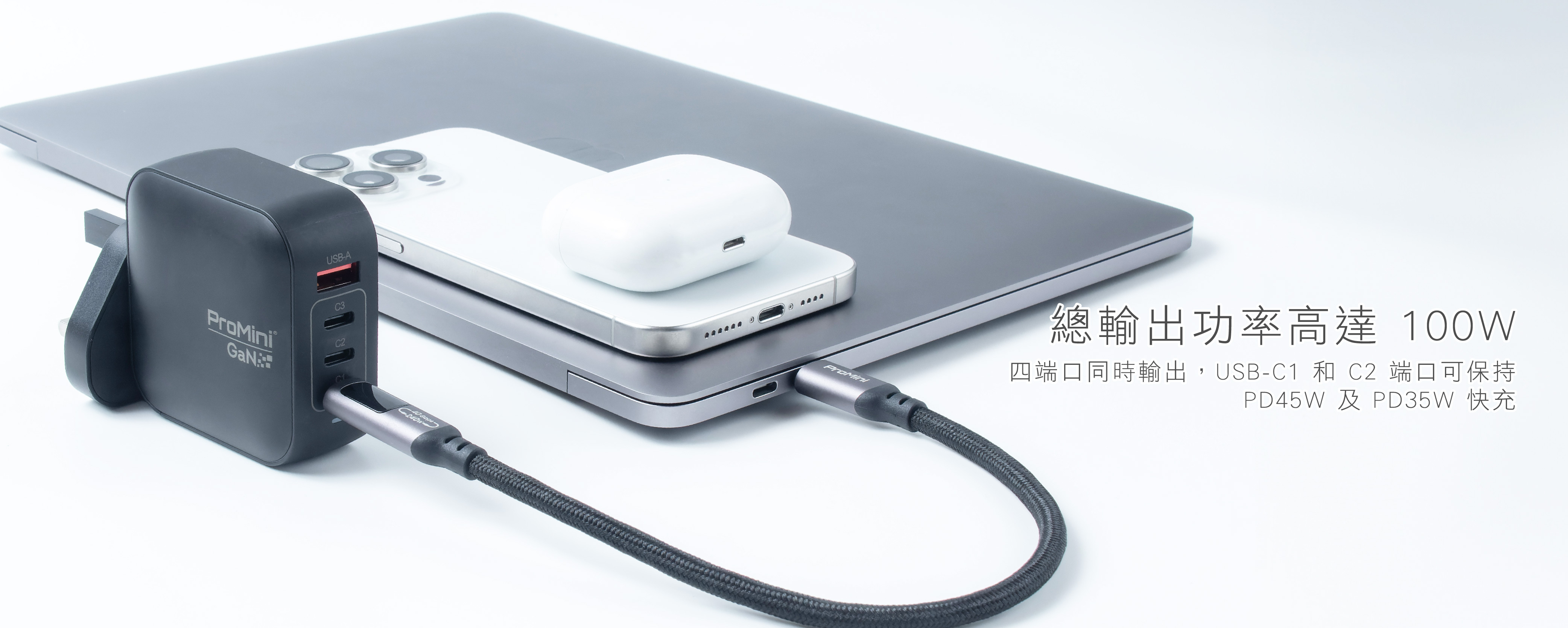 - 可提供PD100W(Max.) 為MacBook Pro / 筆記本電腦快速充電