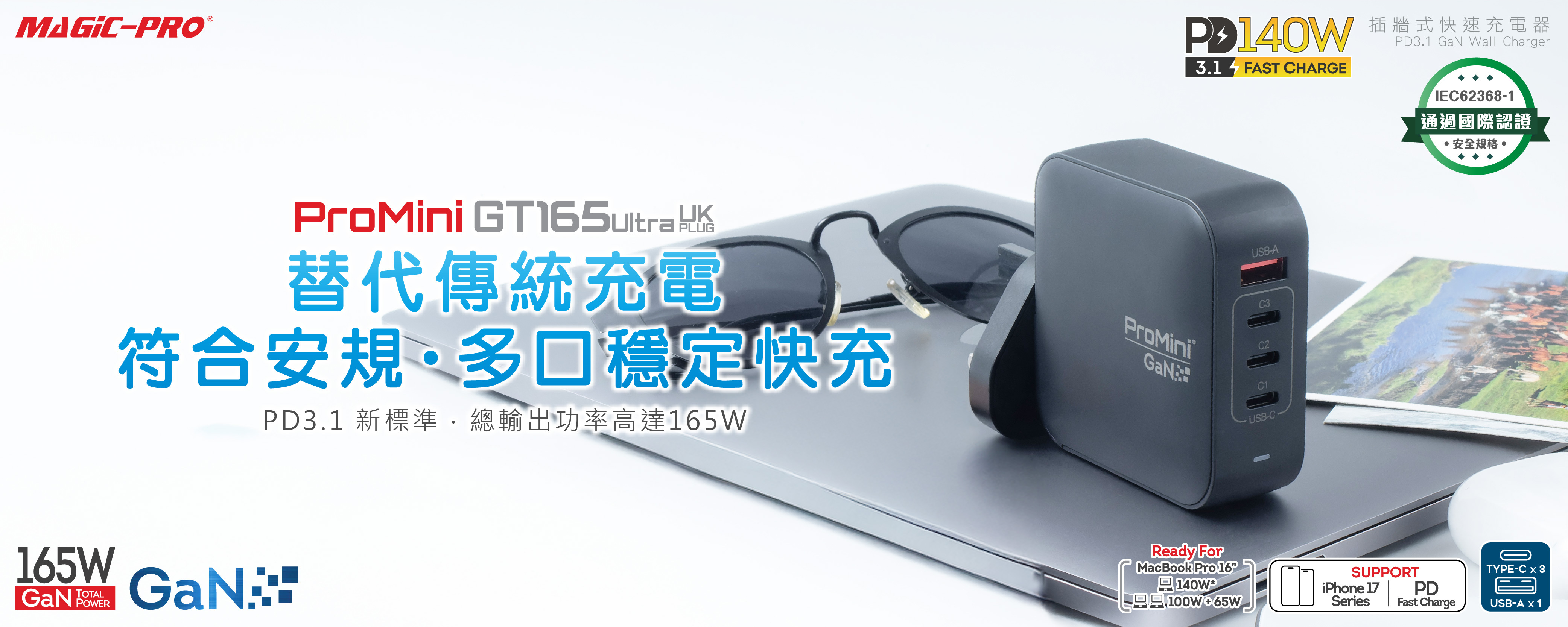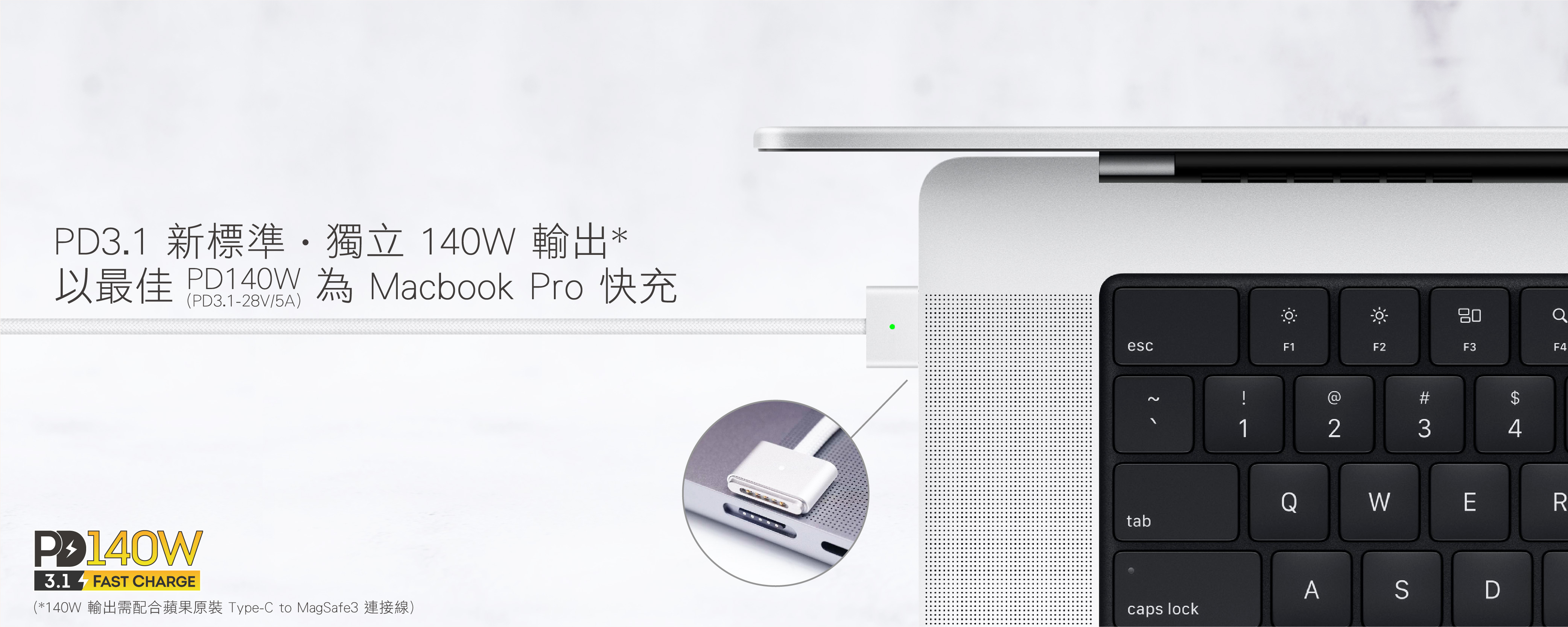 - 為2台 MacBook Pro / 筆記本電腦充電,可提供100W+65W (Max,) 快速充電