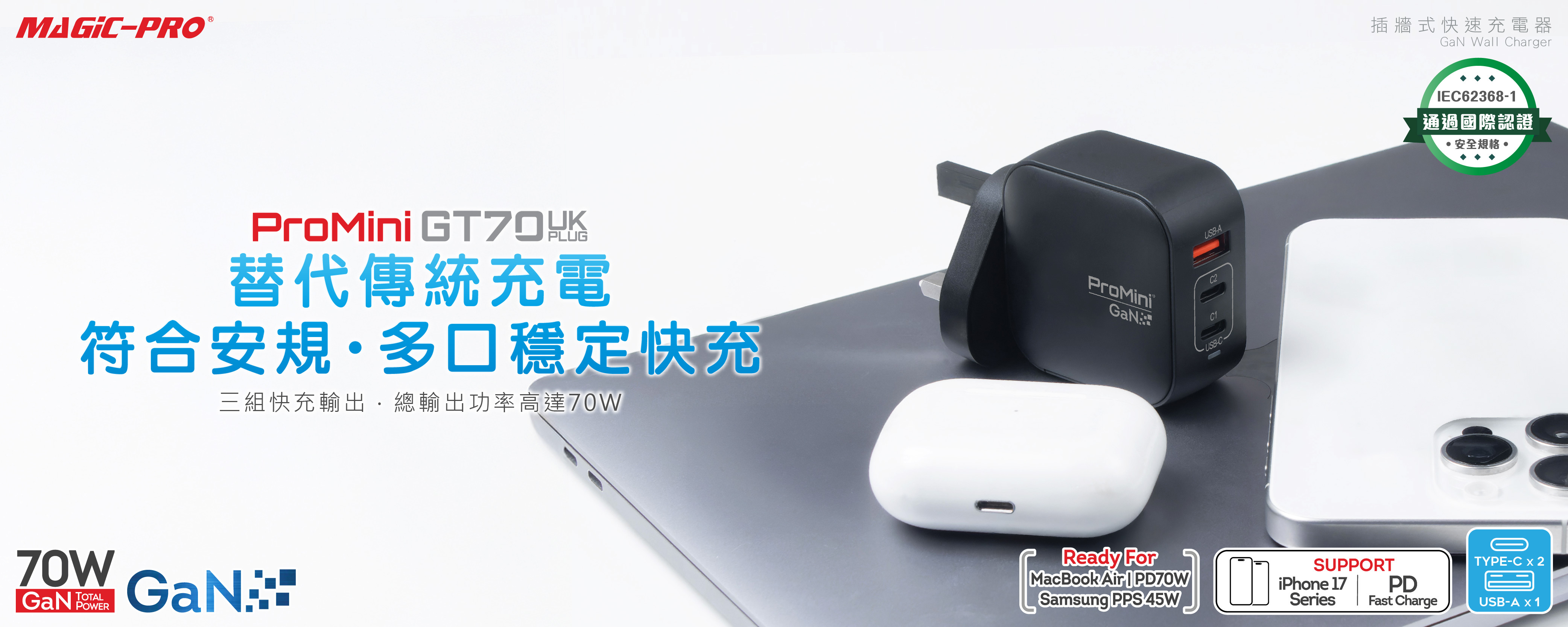 - MacBook Air/Notebook 70W(Max.)快充