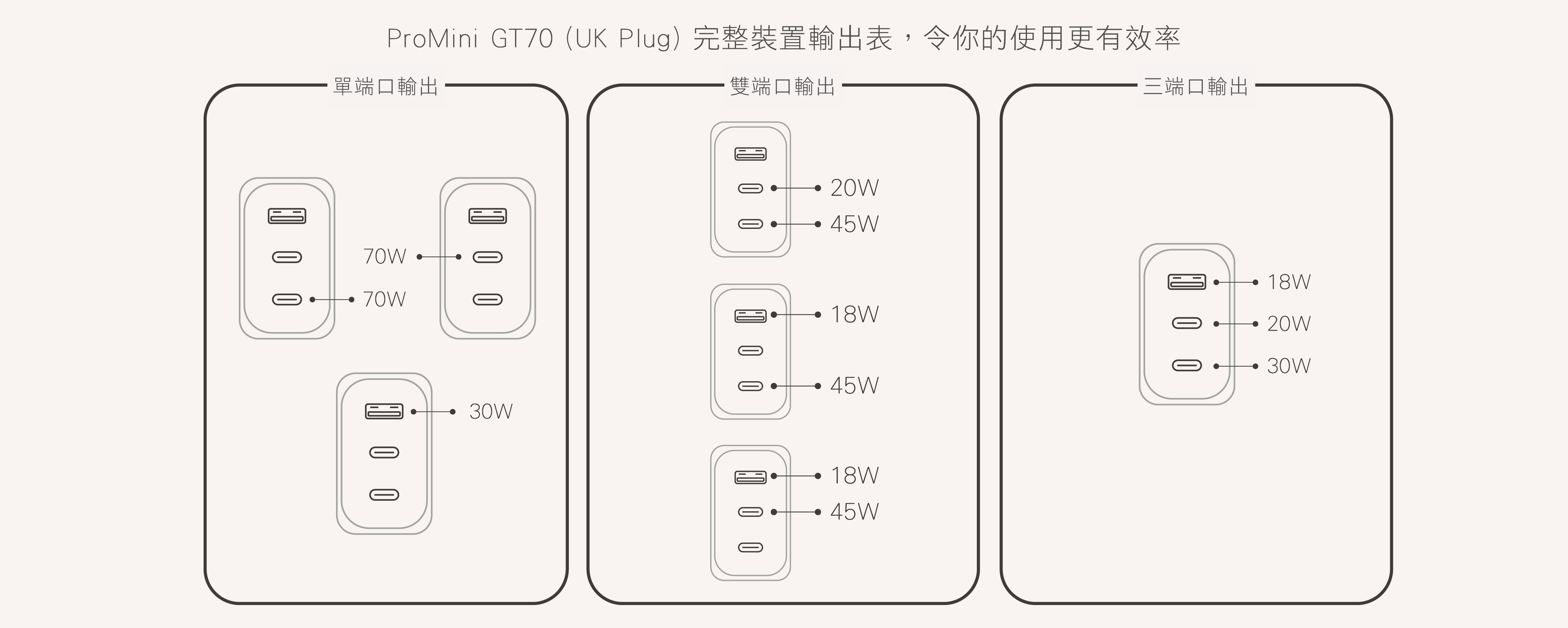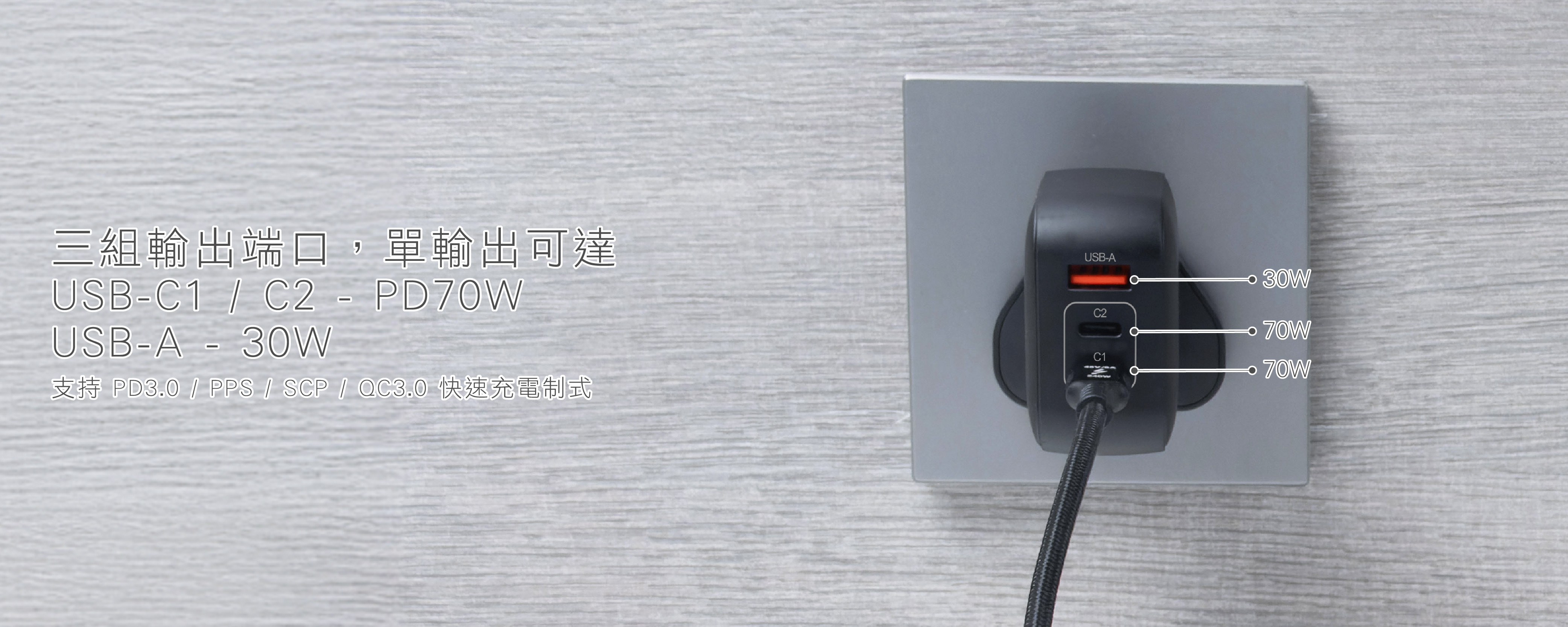 - 三輸出時,C1,C2,USB-A保持30W.20W,18W