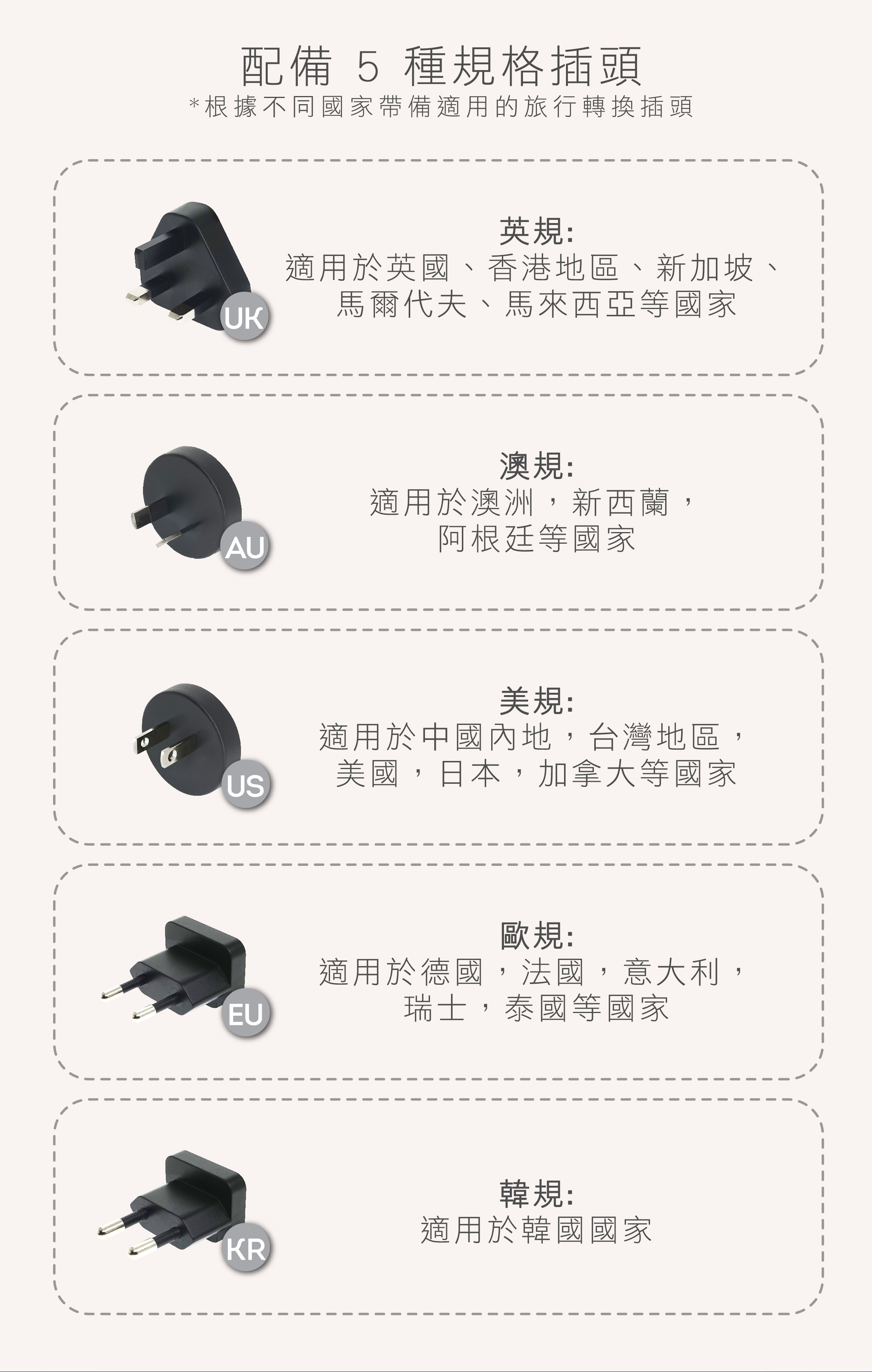 *旅行轉換插頭 (美規、歐規、澳規、韓規)只適用於香港以外地方