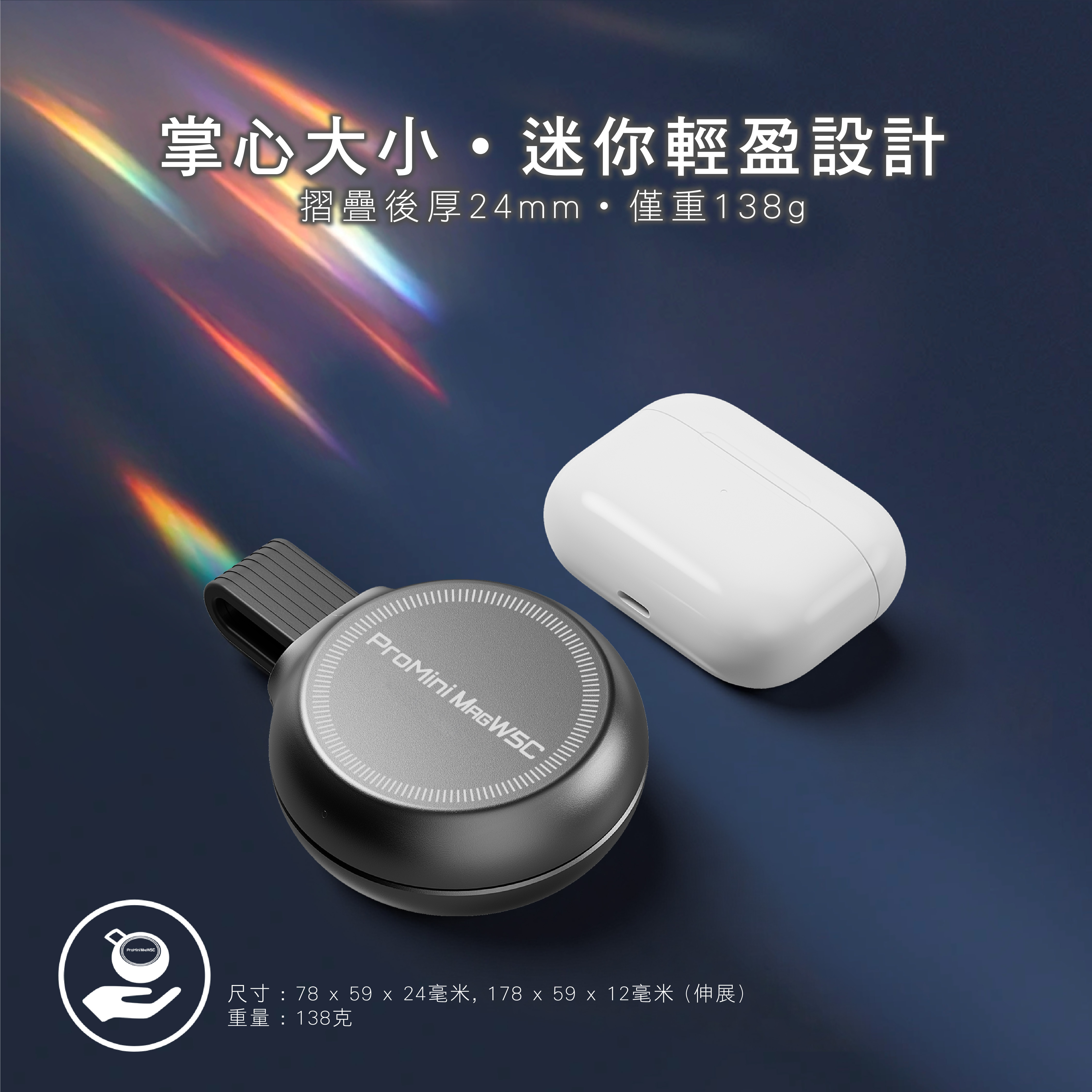 - 掌心大小迷你設計,摺疊後厚度24mm,僅重138g