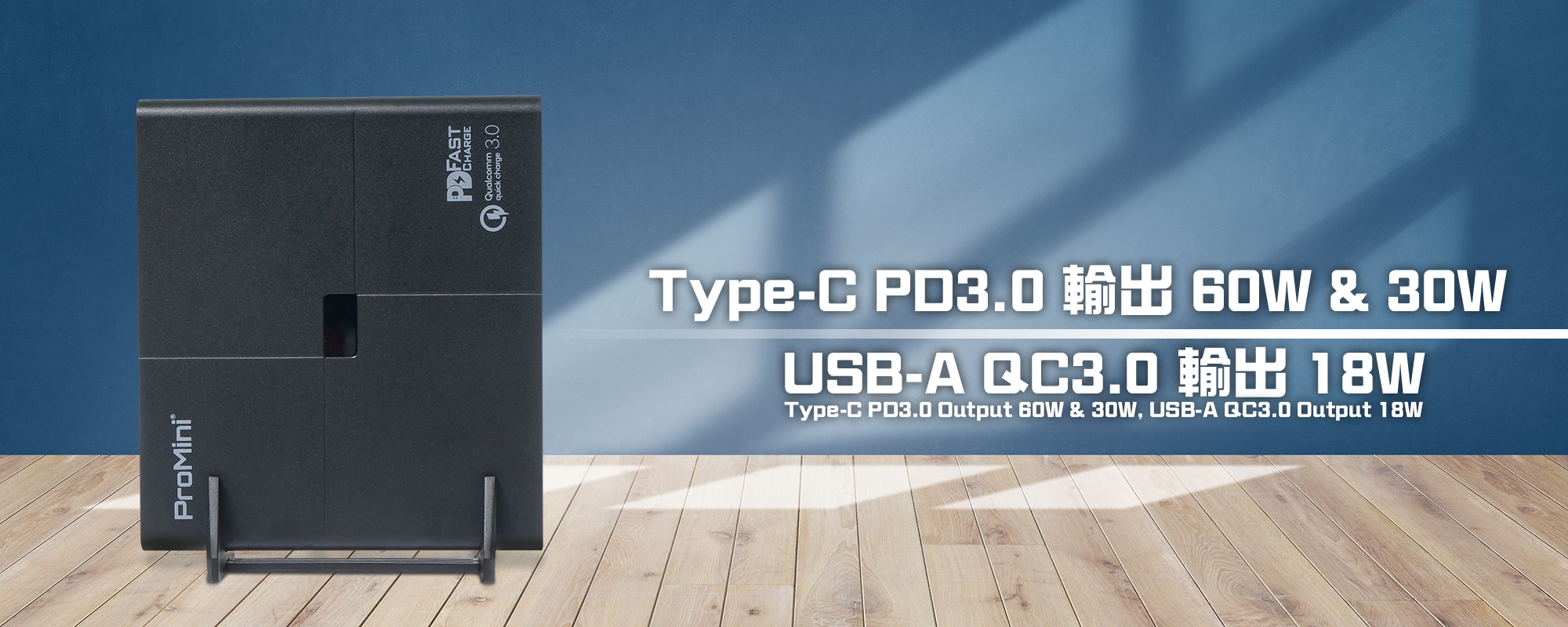 輸出1: Type-C port, DC5V⎓3A, 9V⎓3A, 12V⎓3A, 15V⎓3A, 20V⎓3A (60W – PD3.0 PPS# / QC3.0)