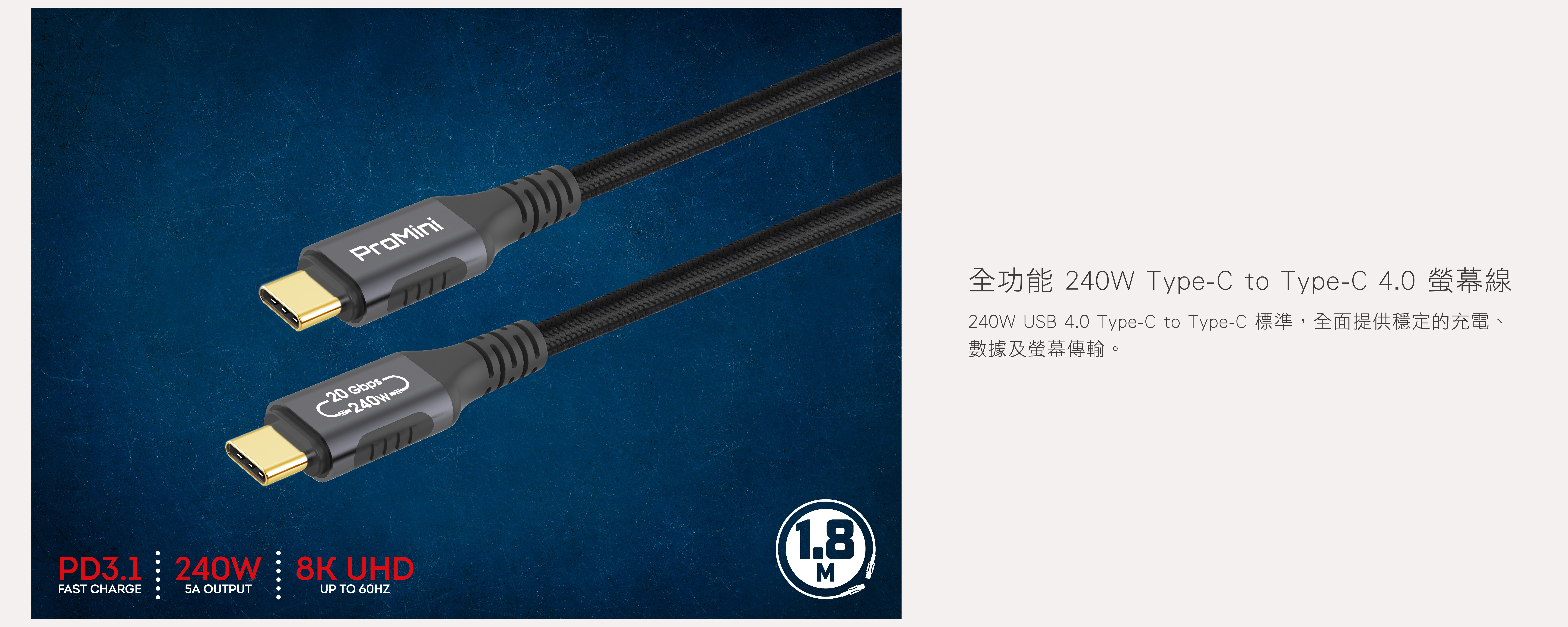 ProMini 240W Type-C to Type-C 4.0螢幕線