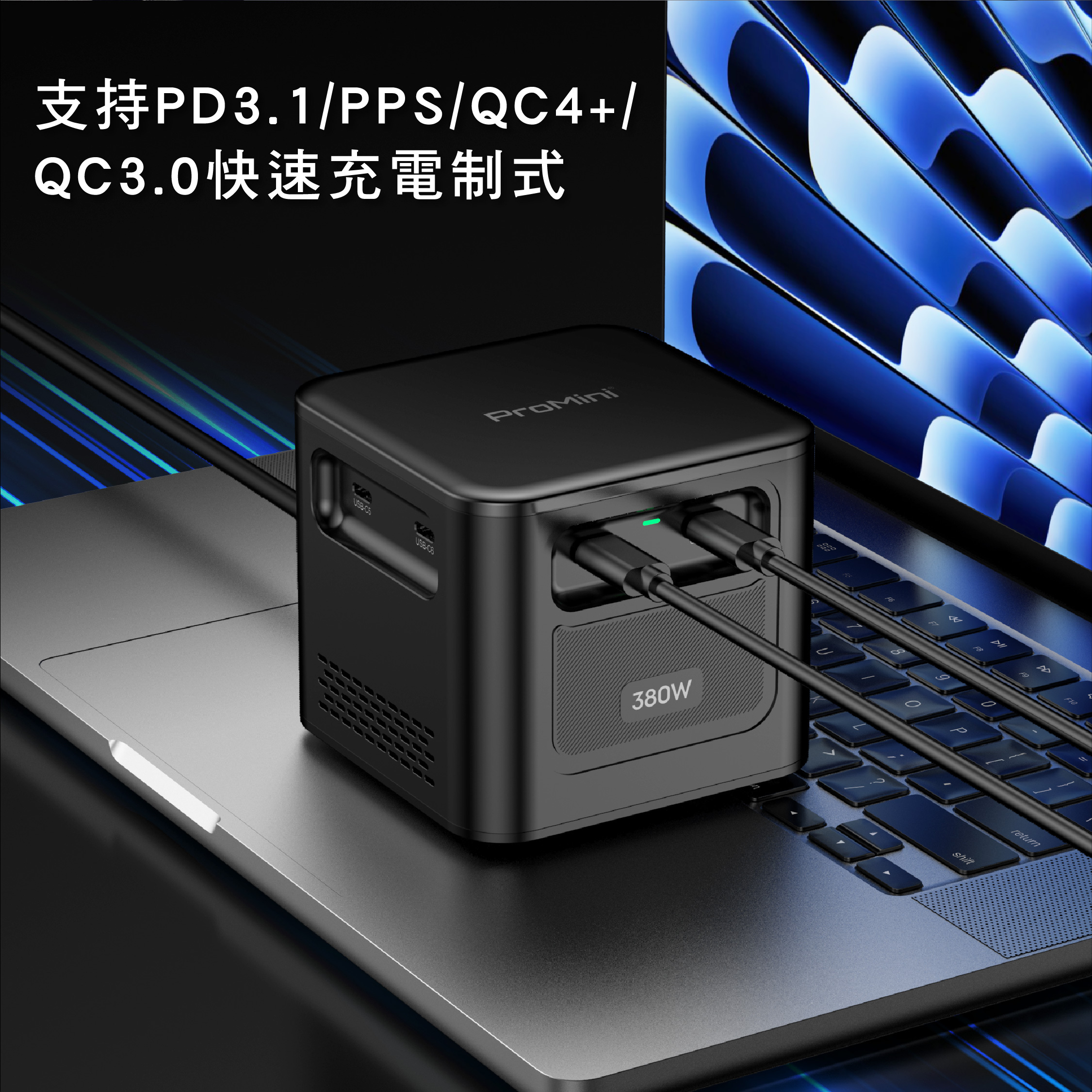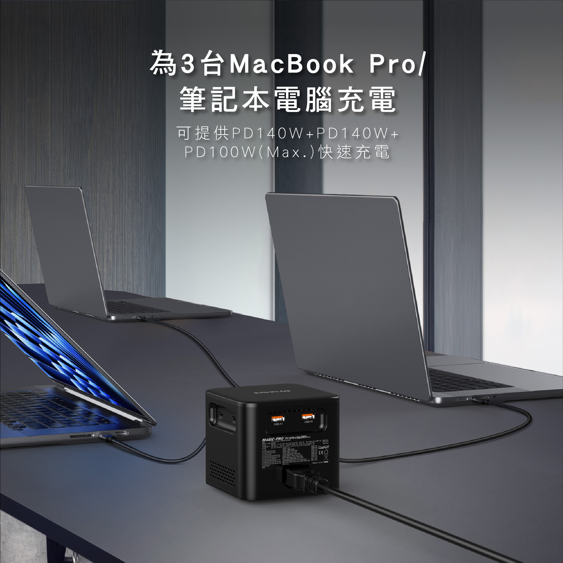 -為3台 MacBook Pro / 筆記本電腦充電提供全速PD140W+PD140W+PD100W (Max.)快速充電