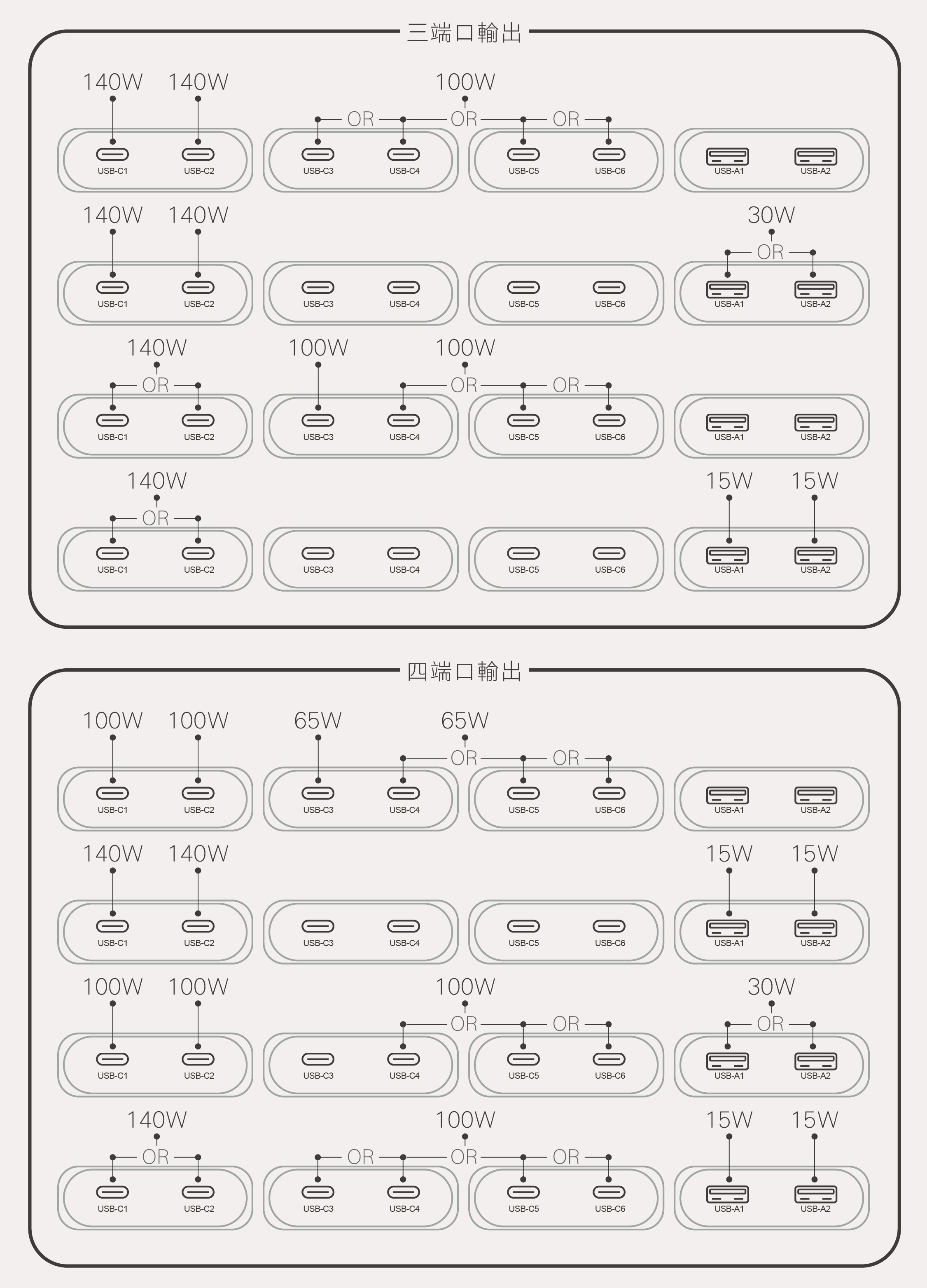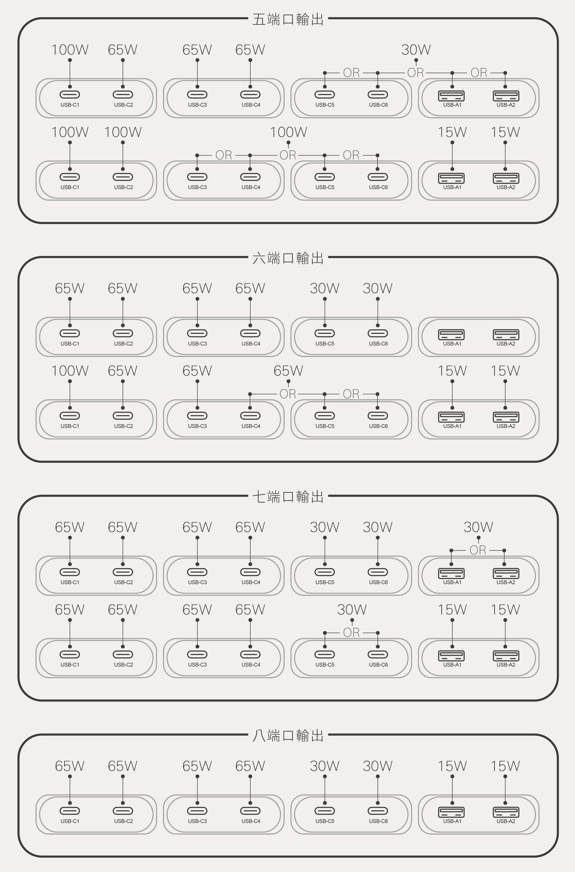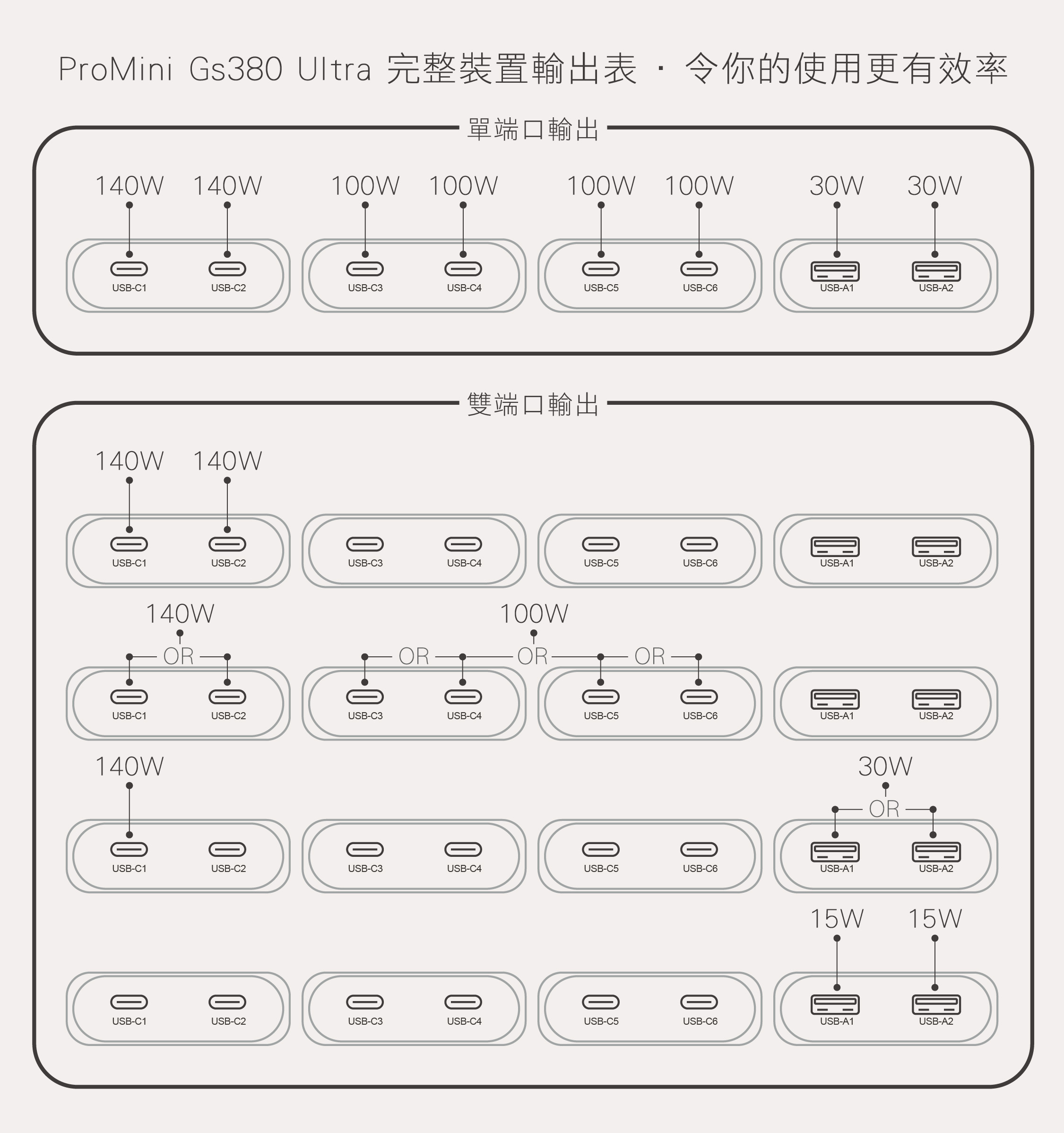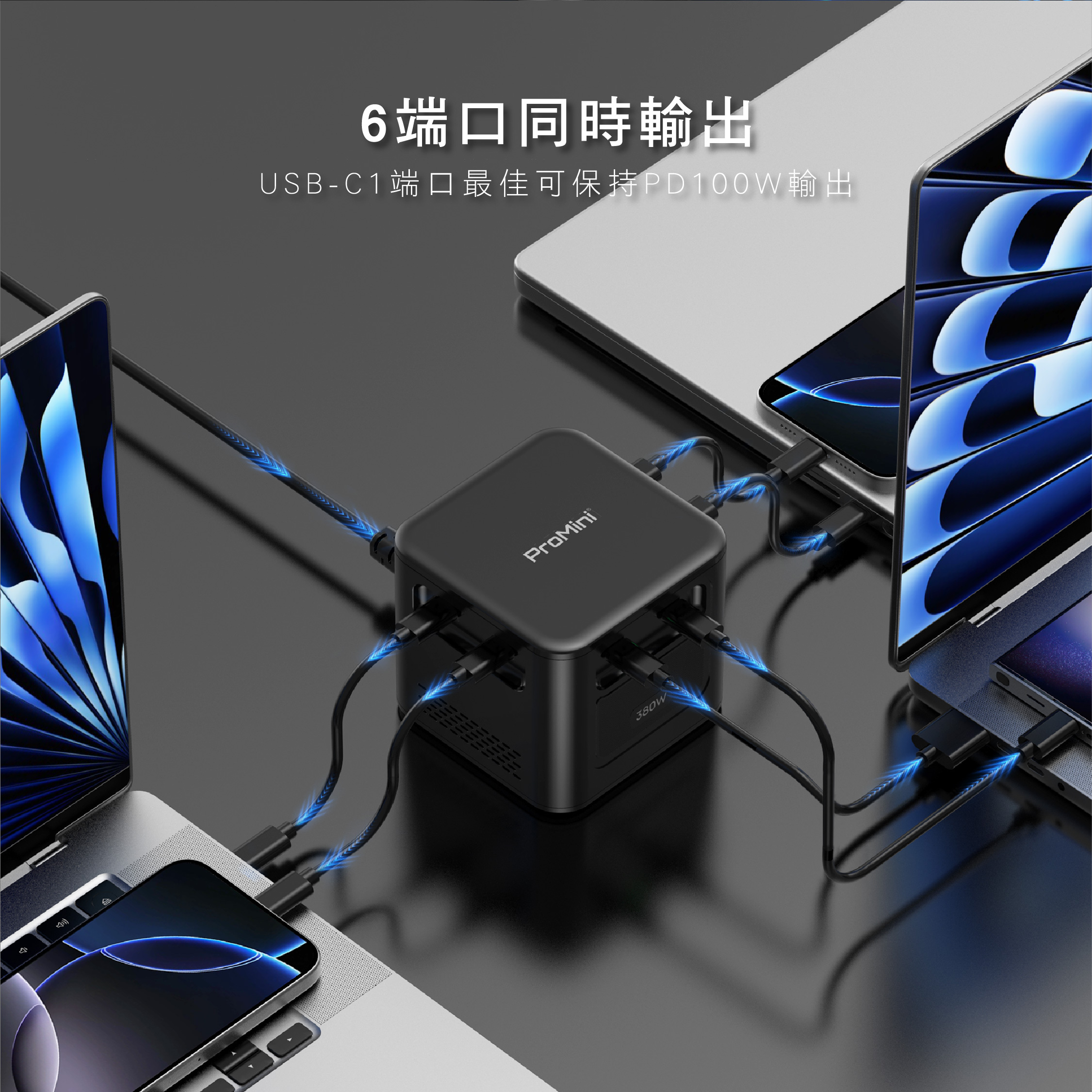 -6端口同時輸出,USB-C1端口最佳可保持PD100W 輸出